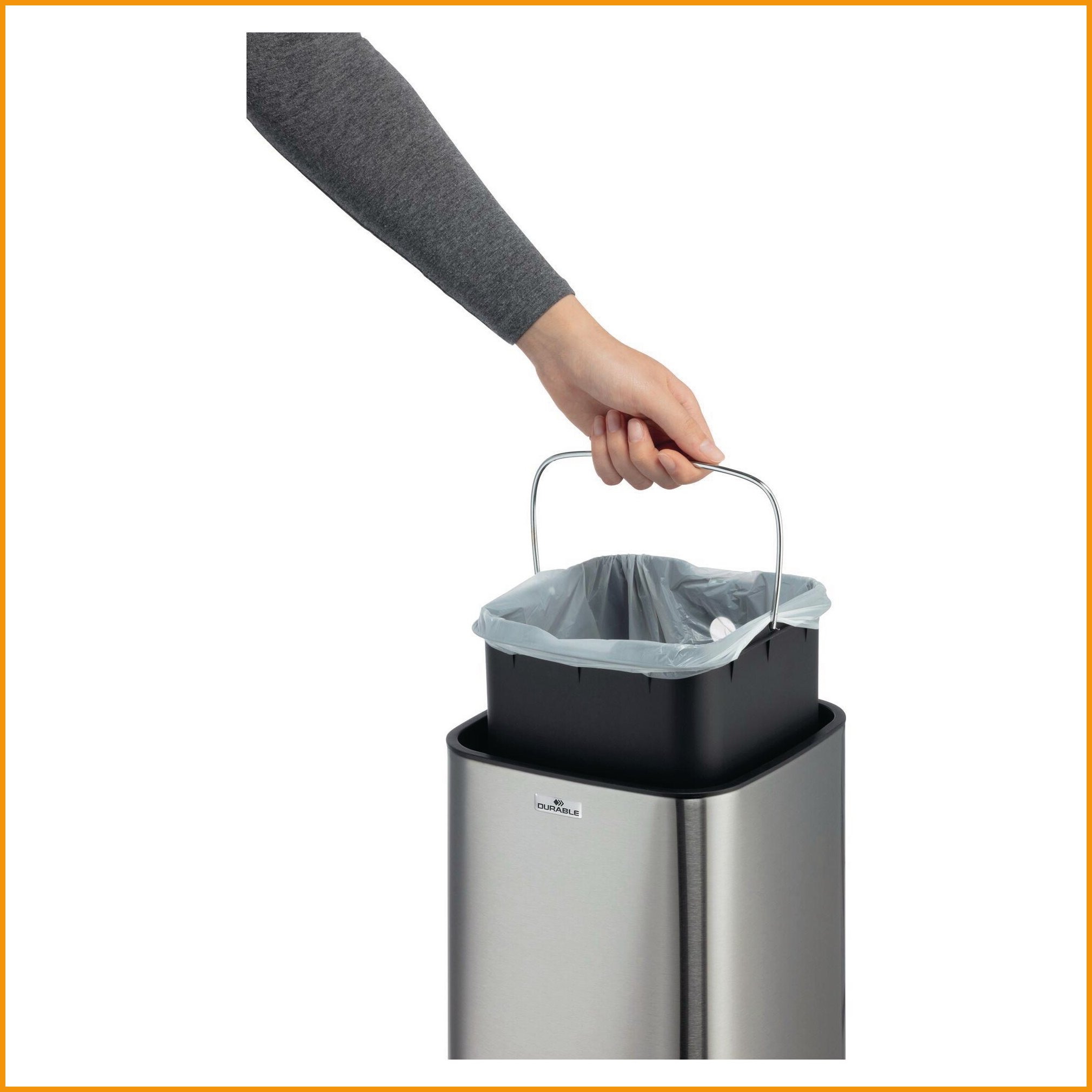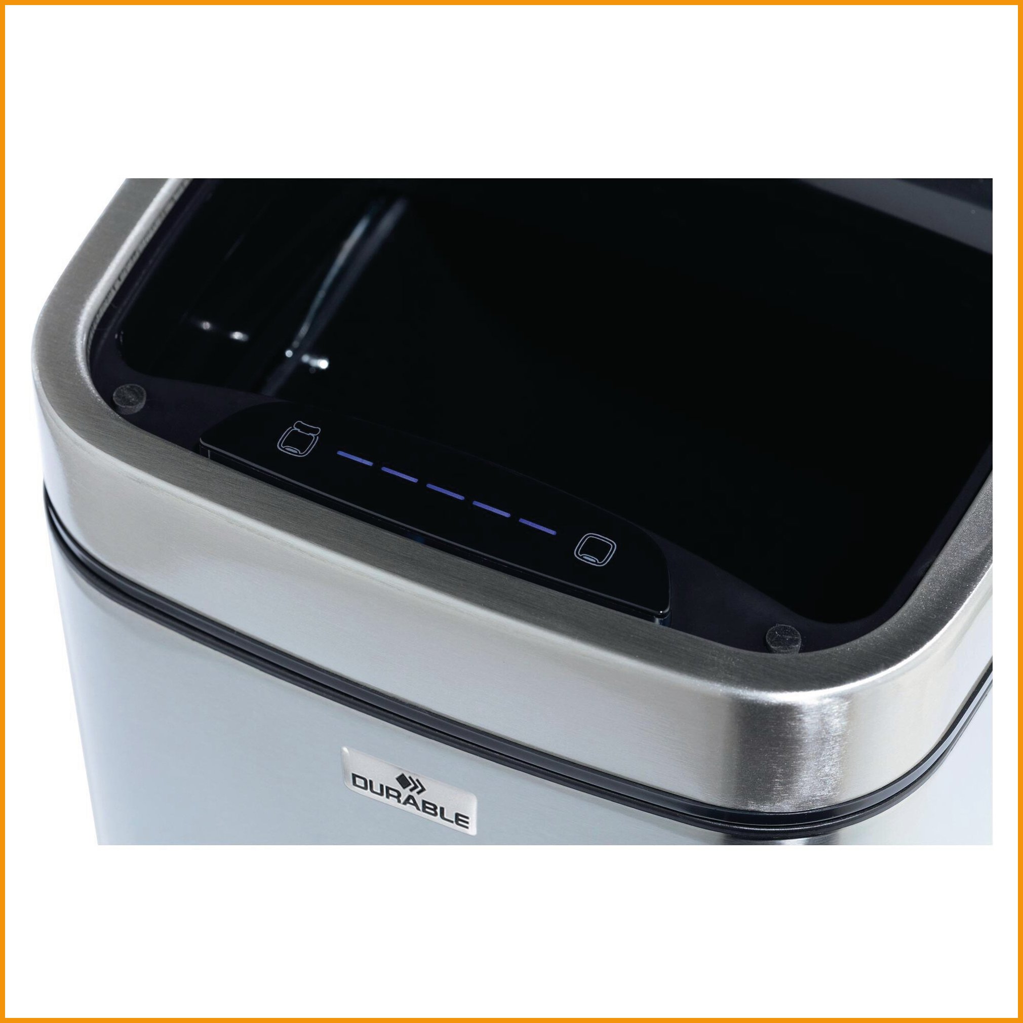 Durable sensorbin on korkealaatuinen roskakori, jonka kansi aukeaa itsestään liiketunnistimen avulla käden lähestyessä kantta. kansi myös sulkeutuu automaattisesti muutaman sekunnin jälkeen. sekä avautuminen että sulkeutuminen tapahtuvat erittäin hiljaisesti ilman kolinoita ja kalinoita. kosketusvapaa roska-astia takaa hyvän hygienian. roskakorin pinta on rasvaisia sormenjälkiä hylkivää ruostumatonta terästä. roskakorin sisällä olevassa ämpärissä on kiinnikkeet roskapussin kiinnittämistä varten. kannen voi irrottaa tyhjentämisen ajaksi. roska-astian pohjassa on liukuesteet. neljällä aa-paristolla (ei sisälly toimitukseen, sopivat paristot koodilla Aa Paristo Energizer max plus lr6 alkali 20kpl) toimiva kansi voidaan avata ja sulkea myös manuaalisesti. tilavuus: 6 litraa.Roska-astia Durable sensorbin no touch 6l on erinomainen roskis, jonka verkkokauppatilauksen toimitus perille kestää 1-2 päivää. Huomaa, että ilmainen toimitus on kaikilla yli 140 € hintaisilla tilauksilla! Meiltä voit tilata laskulla ja ilman rekisteröitymistä. Poistotuote tuotetta saatavilla rajoitetusti, niin kauan kuin varastoa riittää. Varastosaldo 1 kpl. Päivitetty: 14.03.2026.