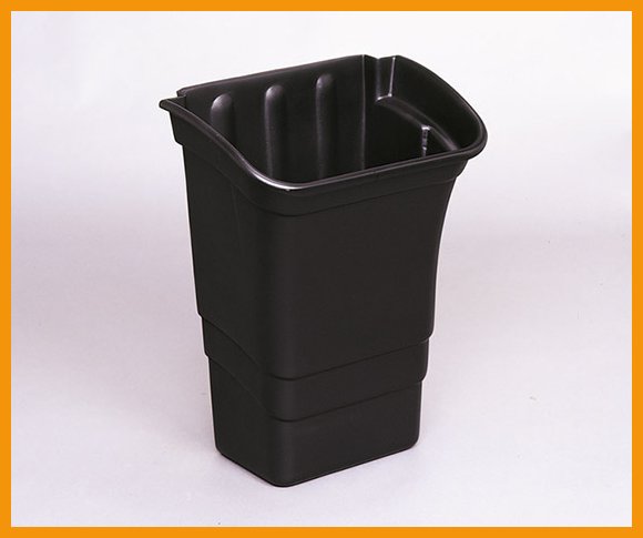 Rubbermaid-tarjoiluvaunuun asennettava roskakori.Mitat: 55,9 x 43,2 x 30,5 cm