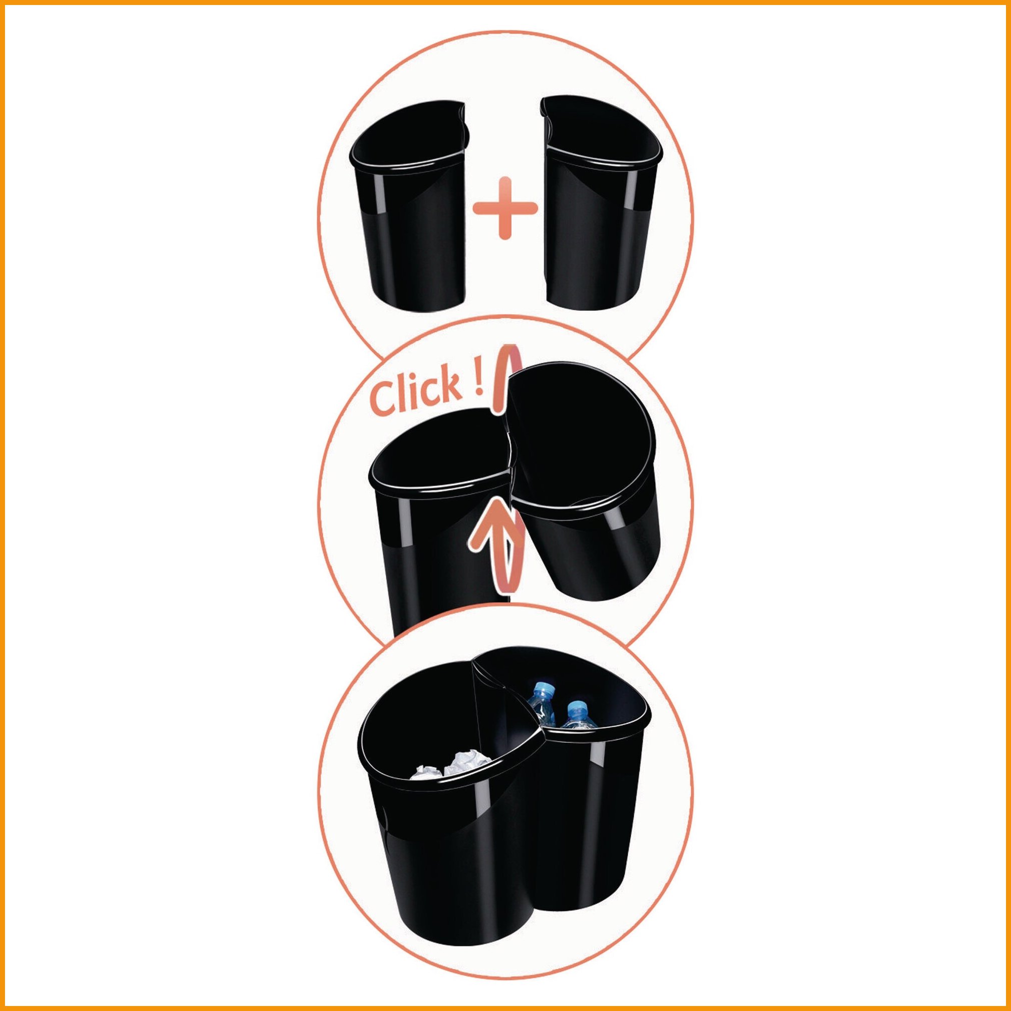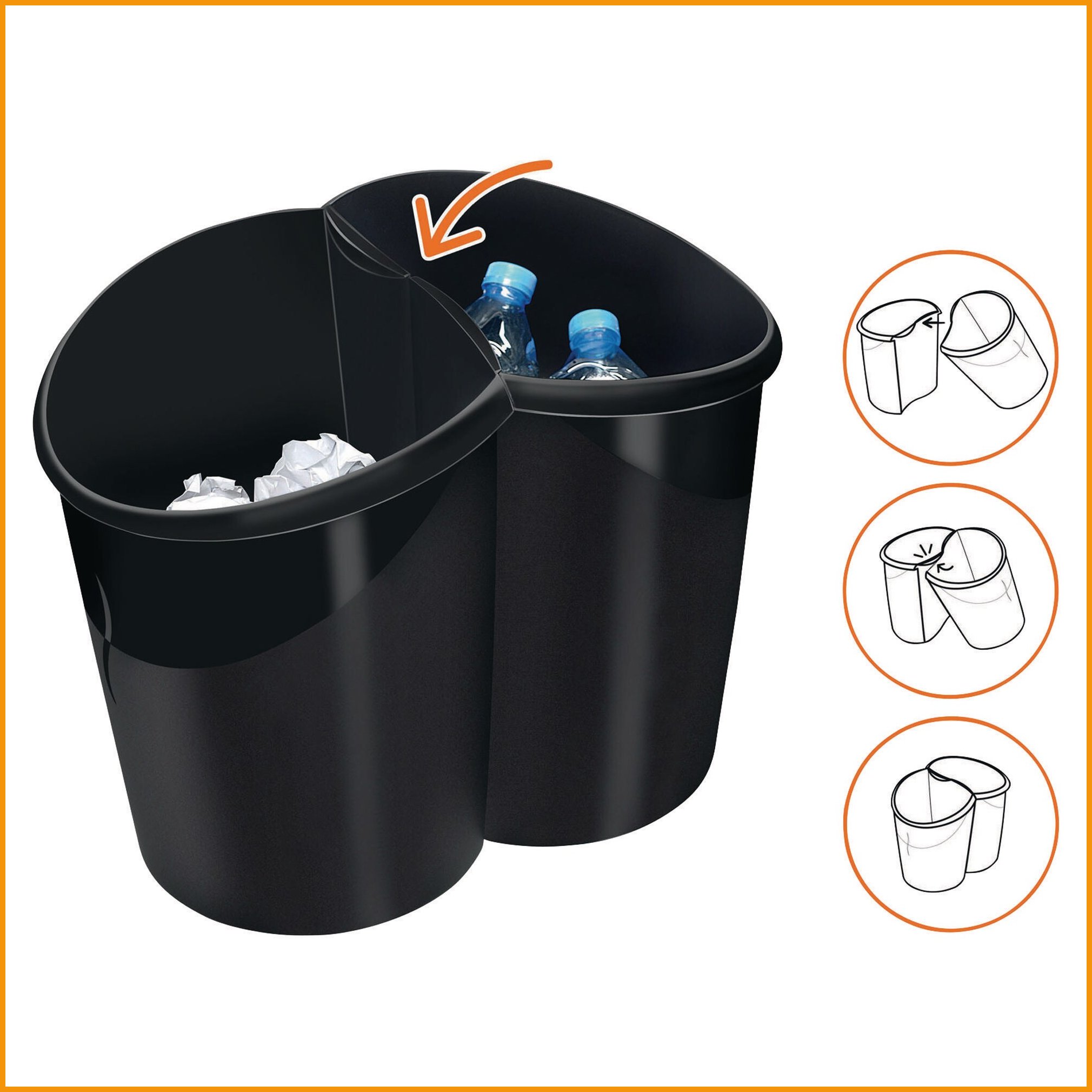 Paperikori eli roskakori Cep 15 litraa musta toimistoon. Cep on ekologinen kierrätysmateriaaleista valmistettu roskis, kaksi yhteenliittämällä saadaan 30 litran lajitteluroskis.
