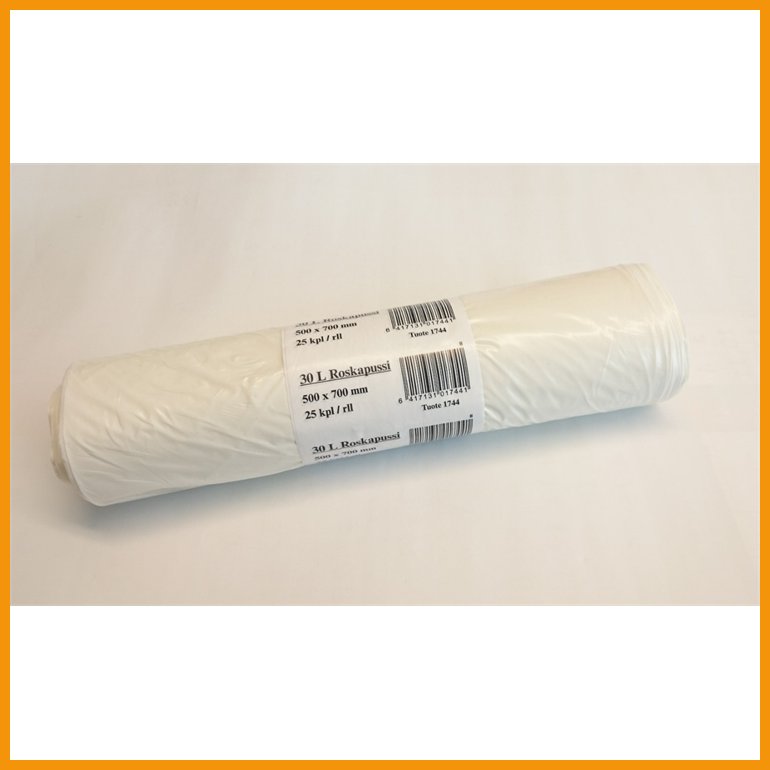 Roskapussi 30L valkoinen 30my 25 kpl on korkealaatuinen jätekassi, jonka verkkokauppatilauksen toimitus perille kestää 1-2 päivää. Huomaa, että ilmainen toimitus on kaikilla yli 140 € hintaisilla tilauksilla! Meiltä voit tilata laskulla ja ilman rekisteröitymistä.