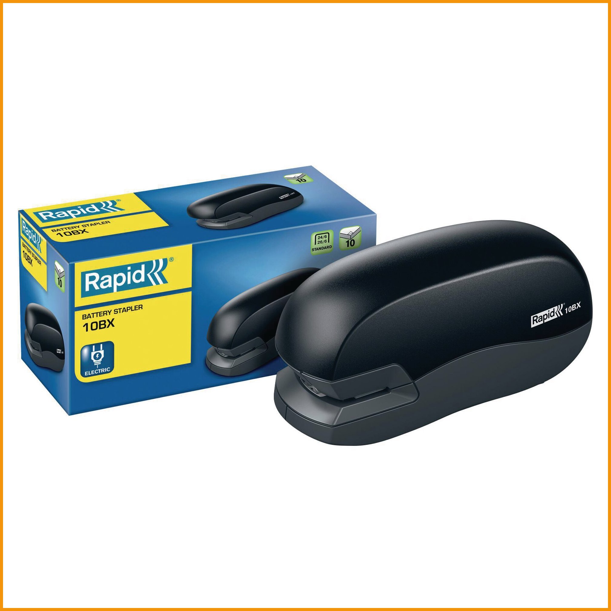 Rapid 10bx -paristonitoja sopii päivittäiseen käyttöön. Voit käyttää nitojaa kotona, toimistolla tai vaikka työmatkalla, sillä paristojen ja kompaktin kokonsa ansiosta nitoja kulkee näppärästi mukanasi. Nitojaa on helppo käyttää yhdellä kädellä. Nitoja täytetään helposti edestä.Sähkönitoja Rapid 10BX paristonitoja on korkeatasoinen toimistotuote, jonka verkkokaupan tilauksen toimitus kestää 1-2 päivää. Tiedäthän, että toimitus on ilmainen yli 140 € hintaisille verkkokauppa ostoksille! Meiltä voit tilata laskulla ja ilman rekisteröitymistä.