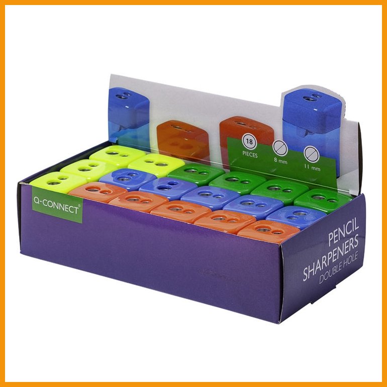 Q-Connectin säiliöteroittimessa on kaksi teroitusaukkoa: yksi tavallisen kokoisen ja toinen paksumman kynän teroittamiseen. Pienemmän aukon halkaisija on 8 mm ja suuremman 11 mm. Terät ovat metallia ja säiliö muovinen.Säiliöteroitin Q-CONNECT kaksireikäinen on korkealaatuinen toimistotarvike, jonka verkkokaupan tilauksen toimitus kestää 1-2 päivää. Tiedäthän, että hinnaltaan yli 140 € verkkokauppatilaus toimitetaan aina ilmaiseksi! Meiltä voit tilata laskulla ja ilman rekisteröitymistä.