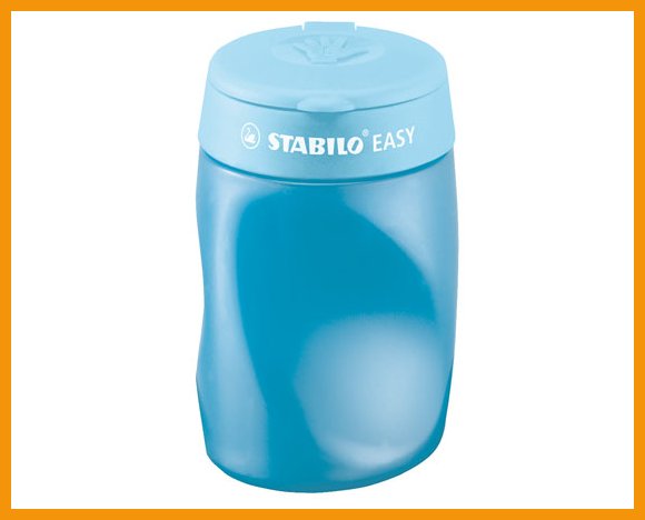 Stabilo EASYsharpener on vasenkätisille muotoiltu ergonominen säiliöteroitin, jossa on kolme erikokoista teroitusaukkoa paksuille, normaalikokoisille ja mekaanisille Stabilo Easyergo 3.15 -kynille. Teroittimen pohjassa on paikka oman nimen kirjoittamiselle.Teroitusaukkojen halkaisijat: 3 mm, 7,5 mm ja 10 mm.