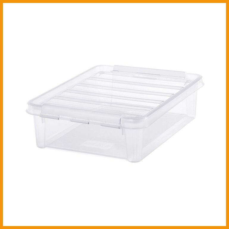 Orthex SmartStore Classic -sarjan kannelliset säilytyslaatikot soveltuvat hyvin monenlaisiin tarpeisiin, kuten toimistotarvikkeiden tai aikakauslehtien säilytykseen. Matala laatikko on mitoitettu A4-kokoisille papereille. Sisältö on helppo nähdä läpinäkyvän pinnan läpi ja vahvat sulkijat pitävät kannen tiukasti kiinni.Classic-sarjan 7,5 litran laatikko on modulaarinen 0,3, 1,5, 4, 14 ja 25 litran laatikoiden kanssa.