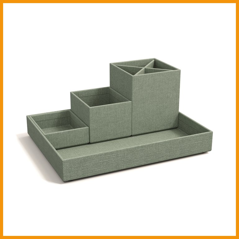 Bigso Lena on kohokuvioinen, paperilaminoitu säilytysrasiasetti pienten tavaroiden järjestämiseen. Rasiat voidaan asetella vierekkäin tai käyttää erikseen.