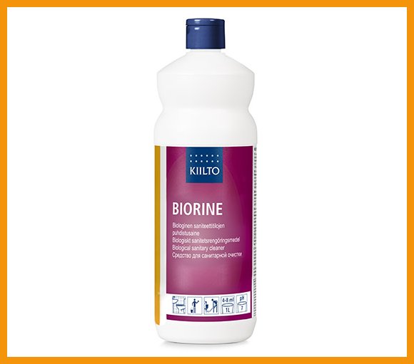 Kiilto Pro Biorine on probioottipitoinen saniteettitilojen puhdistusaine, joka sekä puhdistaa tehokkaasti että poistaa pahat hajut. Probiootit hajottavat mm. ureaa ja poistavat sekä ihmis- että eläinperäiset hajuongelmat, kuten hiki, virtsa, uloste ja oksennus.Soveltuvia käyttökohteita ovat mm. saniteettitilat, julkiset liikennevälineet, porttikäytävät, jalankulkutunnelit, parkkihallit, hoivakodit ja roska-astiat. Soveltuu parhaiten käsimenetelmiin.