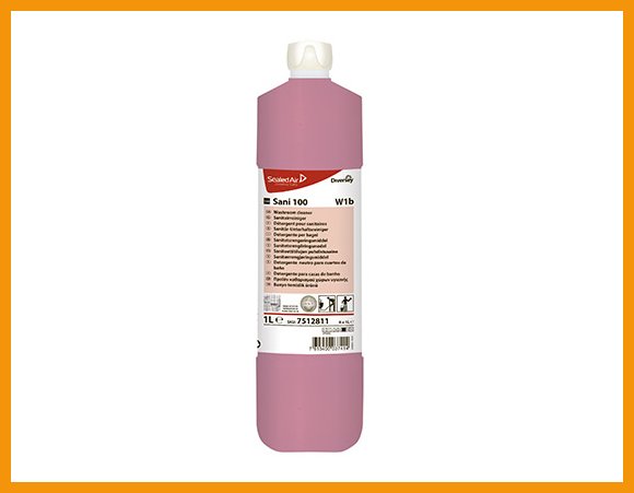 Diverseyn Taski Sani 100 on saniteettitilojen puhdistusaine vettä sietävien kovien pintojen päivittäiseen puhdistukseen. Emäksinen tuote poistaa tehokkaasti sekä pahat hajut (O.N.T-teknologia) että ihorasvan ja kosmetiikka- ja saippuajäämät. Säännöllinen käyttö estää kalkkisaostumien ja -saippuan muodostumisen.Pakkauskoko: 1 litra