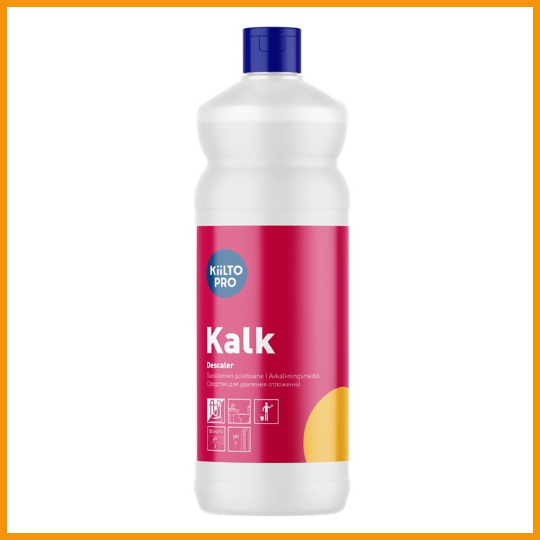 Kiilto Pro Kalk on matalavaahtoinen ja vahvasti hapan puhdistusaine saostumien poistoon voimakkaita happoja kestäville pinnoille. Erittäin tehokas aine on omiaan mm. kalkki- ja ruostesaostumien poistoon suurkeittiölaitteista, kuten astianpesukoneet ja yhdistelmäuunien höyrynkehittimet. Tuote soveltuu myös saumausainejäämien poistoon rakennusten loppusiivouksessa. Ei suositella marmorille eikä kalkkikivelle.Pakkauskoko: 1 litra