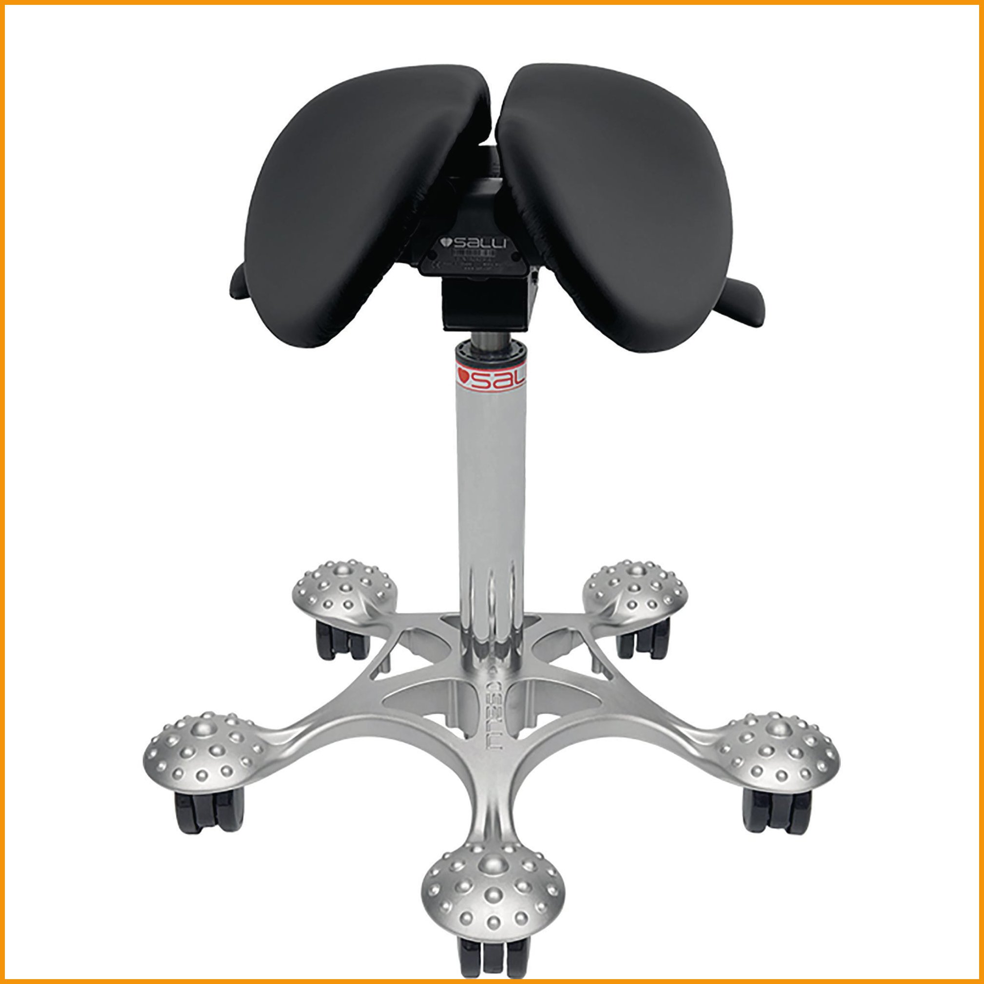 Salli Small MultiAdjuster satulatuoli tarjoaa monipuolisen ratkaisun eri työympäristöihin ja -tehtäviin, ollen ihanteellinen kumppani sekä istuma- että seisomatyöhön, erityisesti kun käytössä on säädettäviä työpöytiä. Sen ansiosta työpisteen vaihtaminen on vaivatonta, sillä tuolilta on yksinkertaista nousta ja siihen on helppo istuutua, kerta toisensa jälkeen. Salli satulatuolin suunnittelu edistää optimaalista ryhtiä, asettaen lantion asentoon, joka tukee selkärangan luonnollista kaarevuutta ja vähentää painetta selkärankaan, mikä puolestaan parantaa työergonomiaa. Tuolissa on kallistuva keinumekanismi, jonka avulla voit nojata mukavasti taaksepäin ja säätää istuimen sekä selkänojan kulman mieleiseksesi. Istuin on väriltään hienostunut musta, ja se tarjoaa tyylikkään ja ajattoman ilmeen, joka sopii saumattomasti mihin tahansa toimiston sisustukseen. Se on valmistettu aidosta nahasta, joka sopii erinomaisesti ajattoman tyylikkääseen toimistoympäristöön, tarjoten sekä mukavuutta että kestävyyttä. Istuimen leveys on 38 cm ja syvyys 36 cm. Istuimen korkeuden maksimikorkeus on 845 mm. Se kestää jopa 120 kg painon. Ergonomista mukavuutta korostava tuote on suunniteltu tarjoamaan mukava ja tukeva istumakokemus, josta on hyötyä erityisesti pitkien työpäivien aikana.Satulatuoli Salli small multiadjuster musta nahka on hyvä ergonomiatuote, joka toimitetaan heti kun sitä saapuu varastoon (1-2 viikkoa). Huomaa, että Toimitus on ilmainen kaikilla verkkokaupan ostoksilla, joiden hinta on yli 140 €. Meiltä voit tilata laskulla ja ilman rekisteröitymistä.