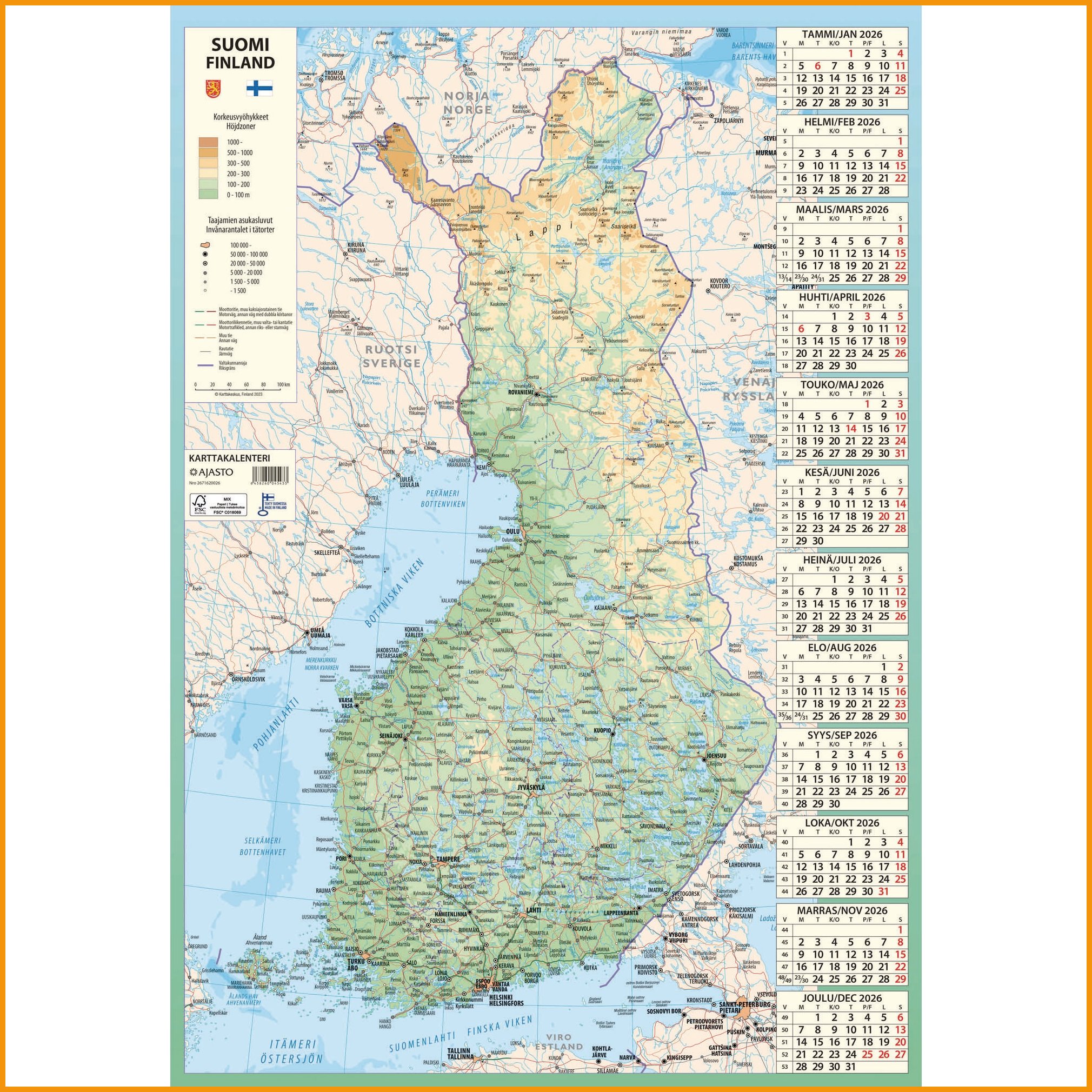 Seinäkalenteri 2026 Ajasto karttakalenteri 590 x 850mm tuotetiedot