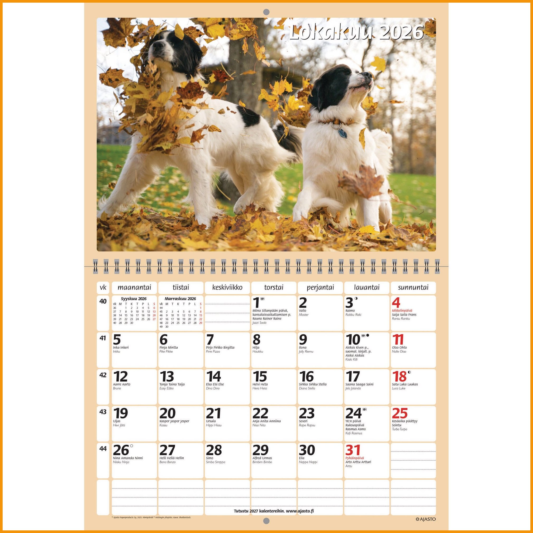 Seinäkalenteri 2026 Ajasto koirat 290 x 420mm tuotetiedot