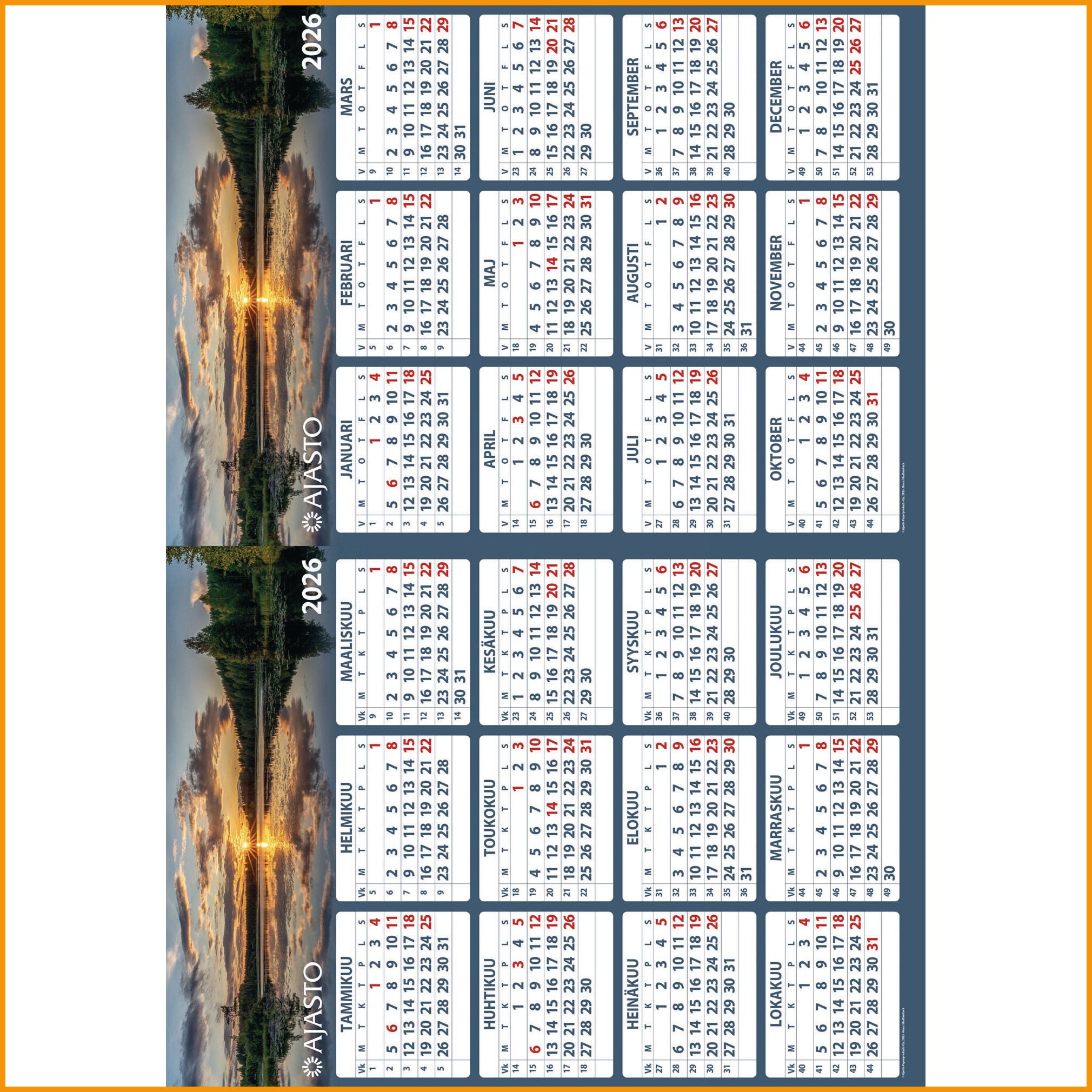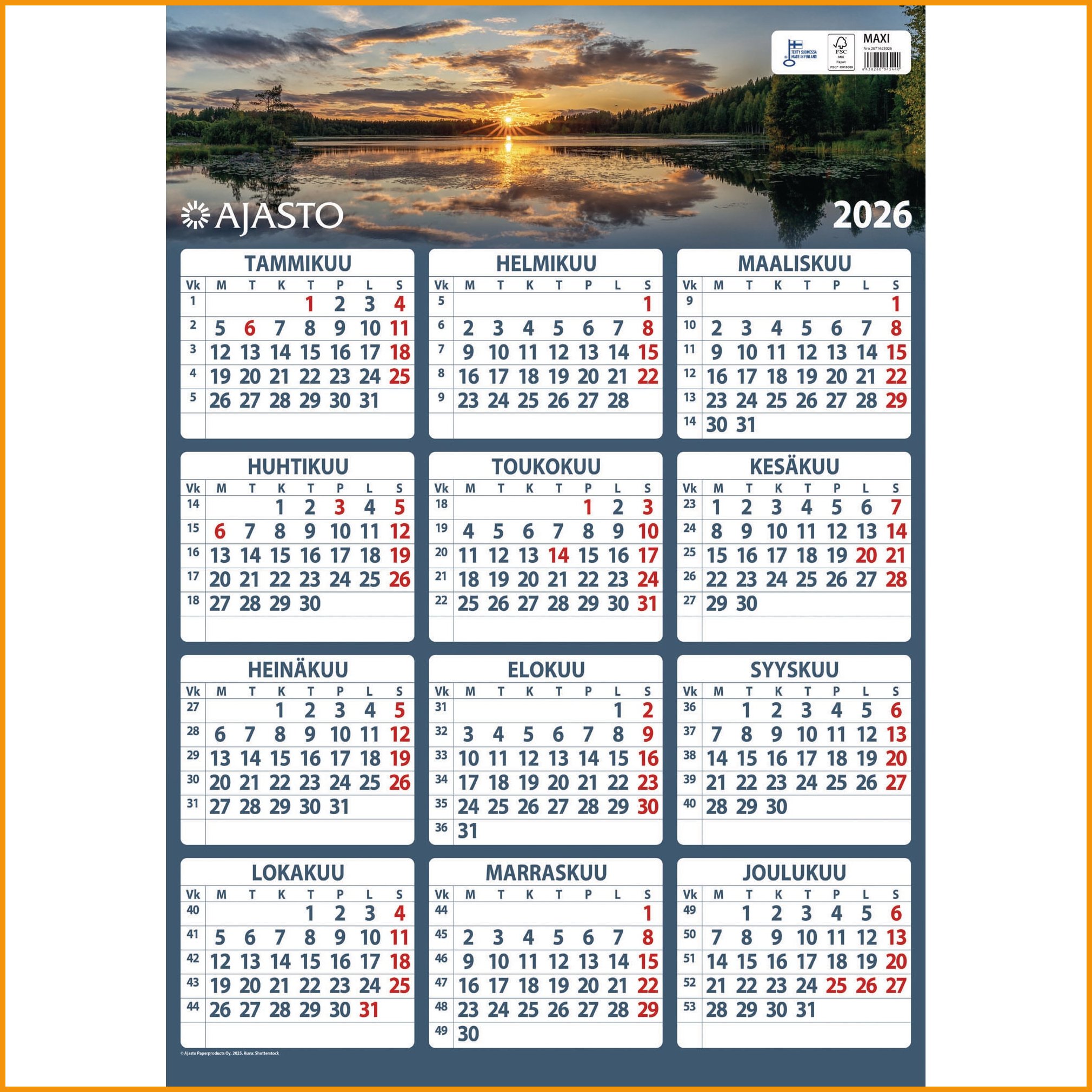Seinäkalenteri 2026 Ajasto maxi 520 x 740mm tuotetiedot