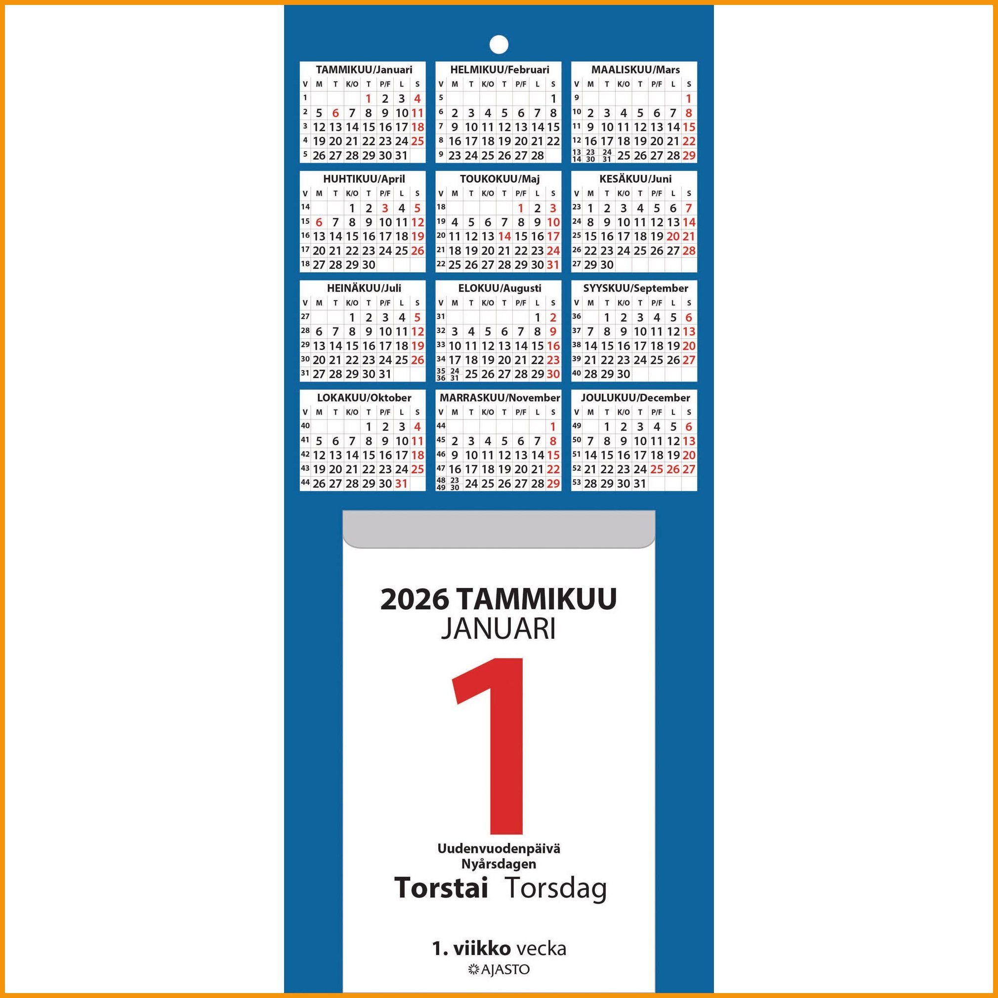 Seinäkalenteri 2026 Ajasto päivälehtiö 83 x 128mm tuotetiedot
