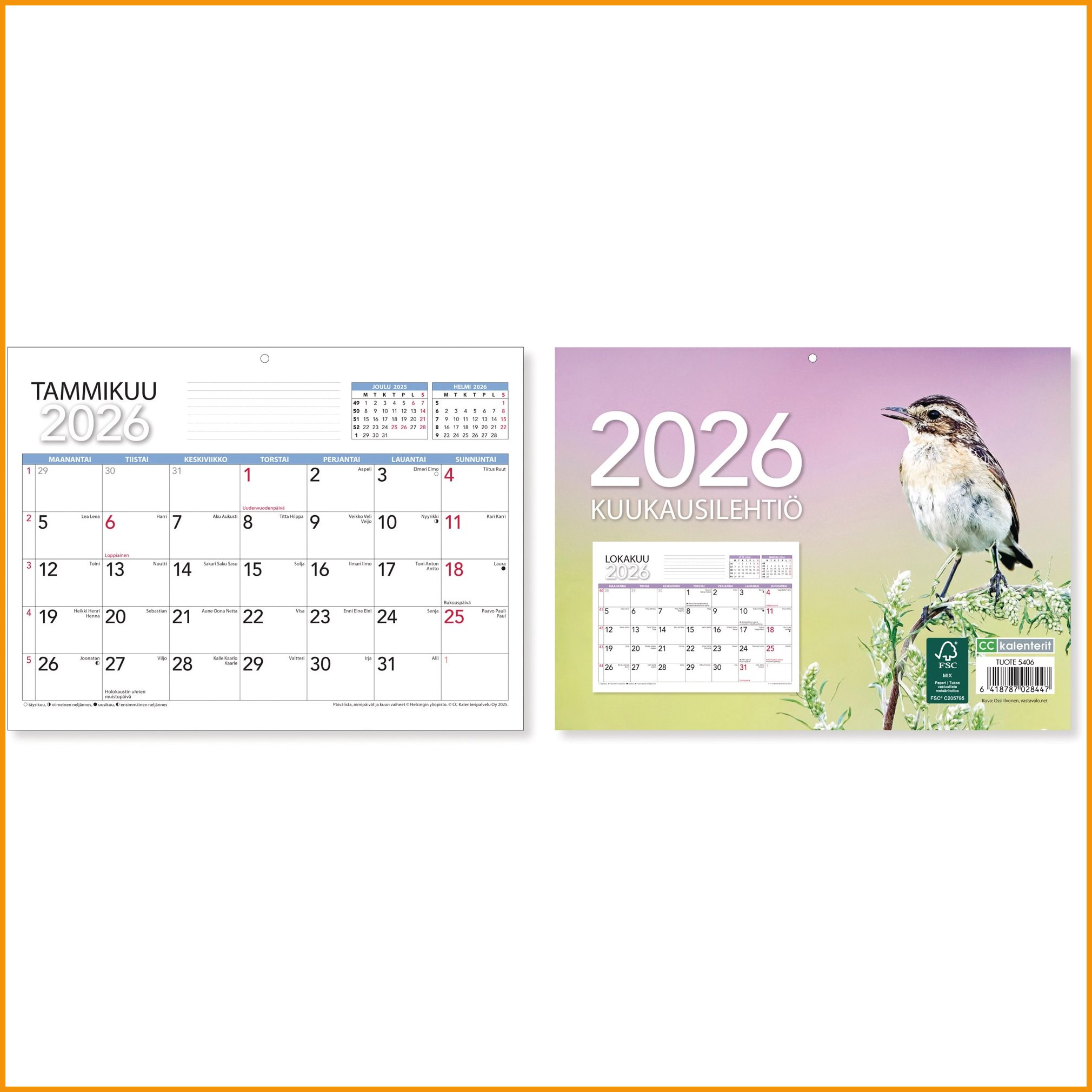 Seinäkalenteri 2026 Cc 5406 kuukausilehtiö 210 x 156mm tuotetiedot