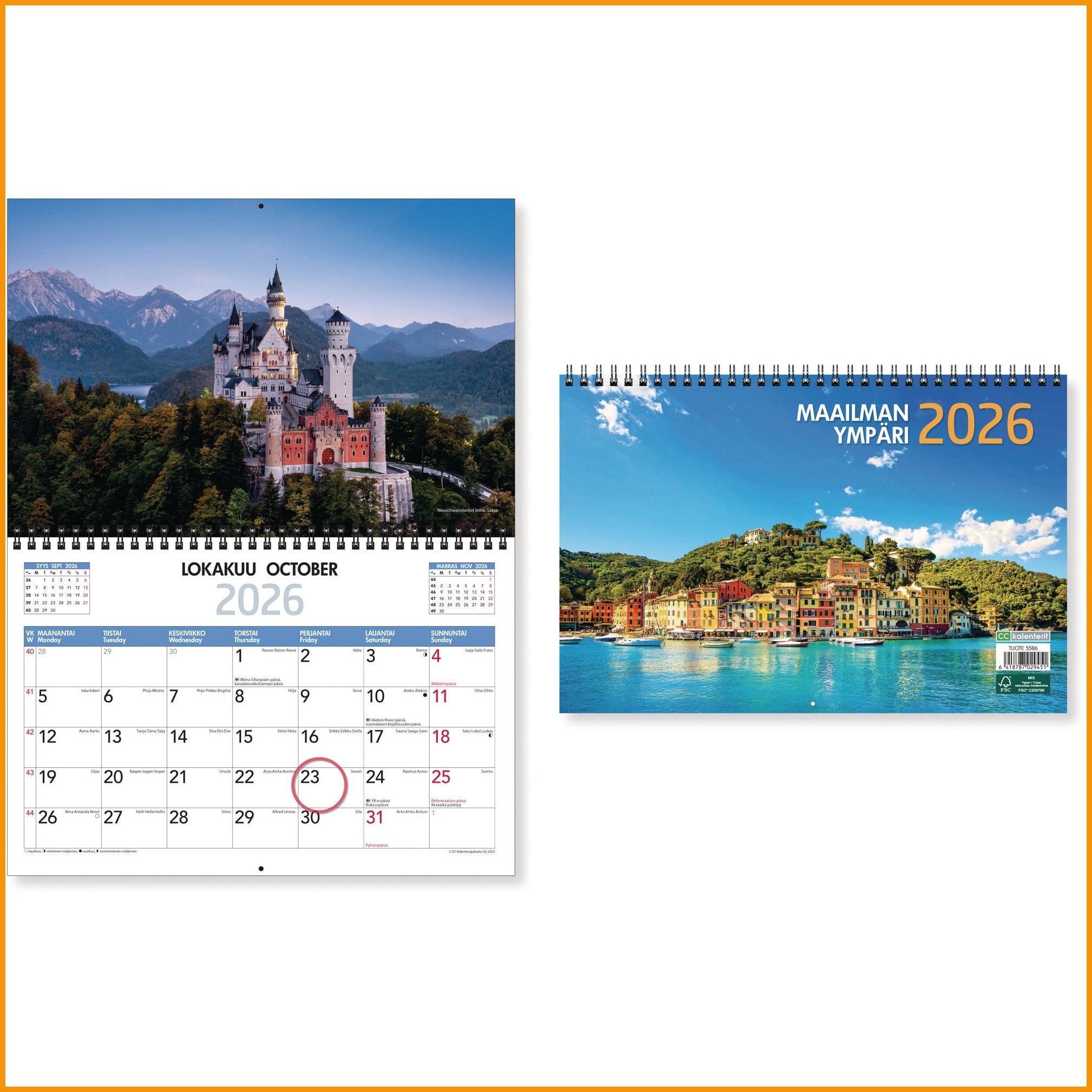 Seinäkalenteri 2026 Cc 5586 maailman ympäri 300 x 400mm tuotetiedot