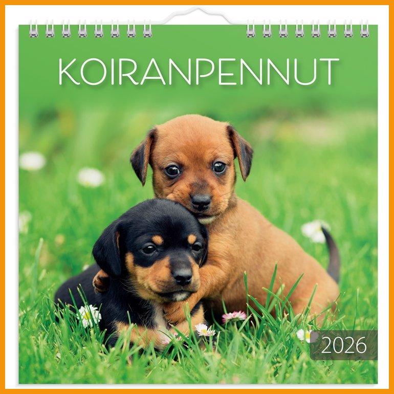 Seinäkalenteri 2026 Koiranpennut on hyvä kalenteritarvike, jonka toimituksen kesto on verkkokaupasta tilattuna 1-2 päivää. Huomaa, että toimitus on ilmainen yli 140 € hintaisille verkkokauppa ostoksille! Meiltä voit tilata laskulla ja ilman rekisteröitymistä.