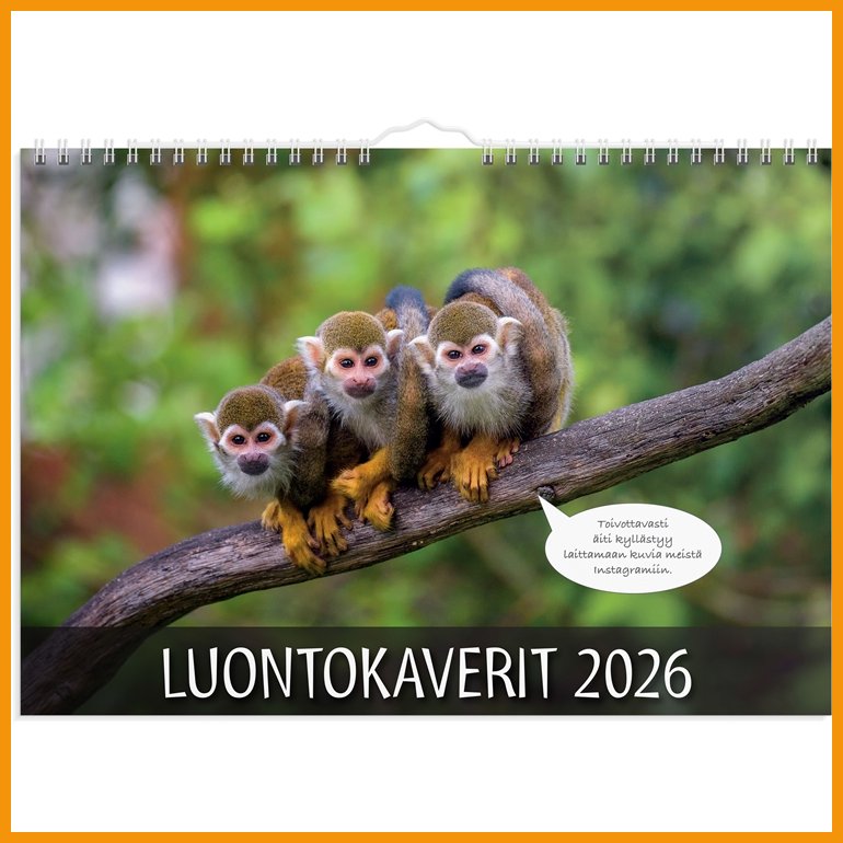 Seinäkalenteri 2026 Luontokaverit on hyvälaatuinen kalenteritarvike, jonka verkkokaupan tilauksen toimitus kestää 1-2 päivää. Muistathan, että toimitus on ilmainen yli 140 € hintaisille verkkokauppa ostoksille! Meiltä voit tilata laskulla ja ilman rekisteröitymistä.