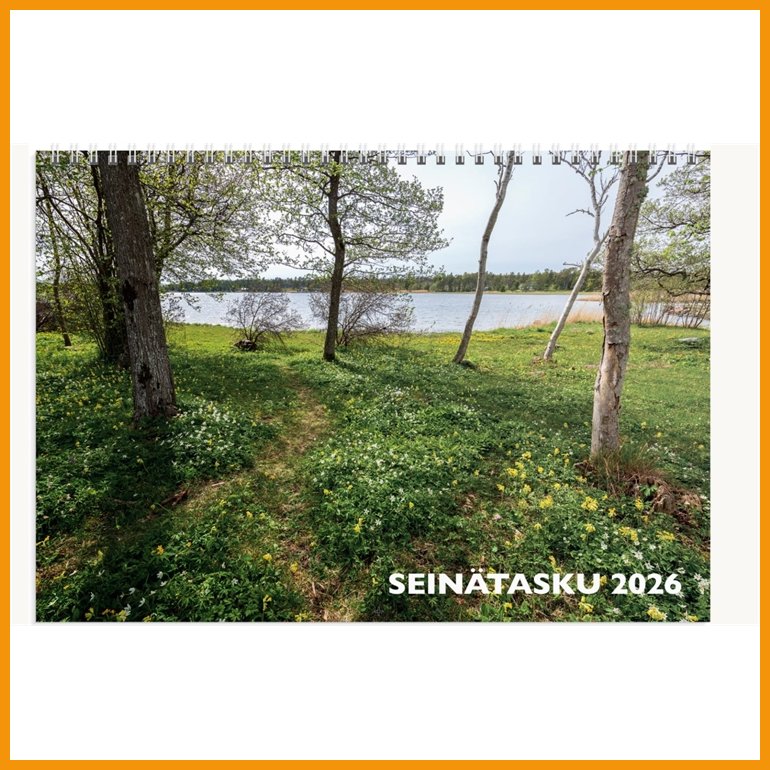 12 kaunista luontokuvaa. Joka kuukaudelle säilytystasku laskuja, kuitteja ja muita tärkeitä tositteita varten. Aukeamalla edellisen sekä tulevan kuukauden kalenteritaulukot. Kalenteri sisältää nimipäivät, liputuspäivät, kansalliset pyhäpäivät ja kuun vaiheet. Suomenkielinen. Parikierresidottu. FSC®. Koko: 250x352 mm (avattuna).Seinäkalenteri 2026 Seinätasku on upea kalenteritarvike, jonka toimituksen kesto on verkkokaupasta tilattuna 1-2 päivää. Tiedäthän, että hinnaltaan yli 140 € verkkokauppatilaus toimitetaan aina ilmaiseksi! Meiltä voit tilata laskulla ja ilman rekisteröitymistä.