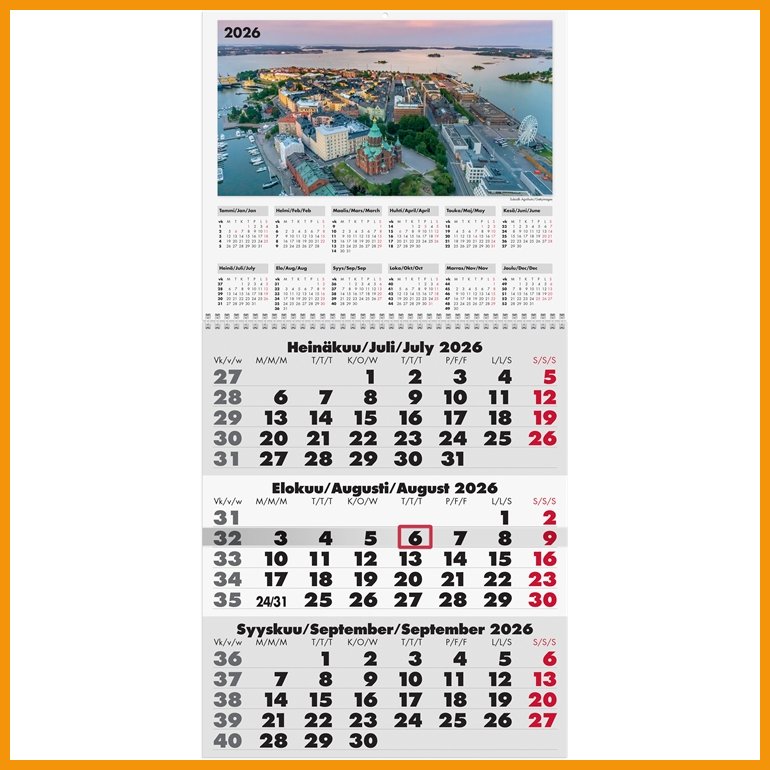 Proficientin hyvään palveluun kuuluu kuljetus toimitusosoitteeseen. Kaikki toimistotarvikkeemme ovat kuljetusvakuutettuja. Tehokas toimituspalvelumme kuljettaa seinäkalenterin 2026 toimitusosoitteeseen kello 8.00 - 15.00. Helsinki, Lahti, Mikkeli, Espoo... siis minne tahansa Suomeen.Tiedäthän, että Toimitus on rahtivapaa kaikilla verkkokaupan ostoksilla, joiden hinta on yli 140 €.