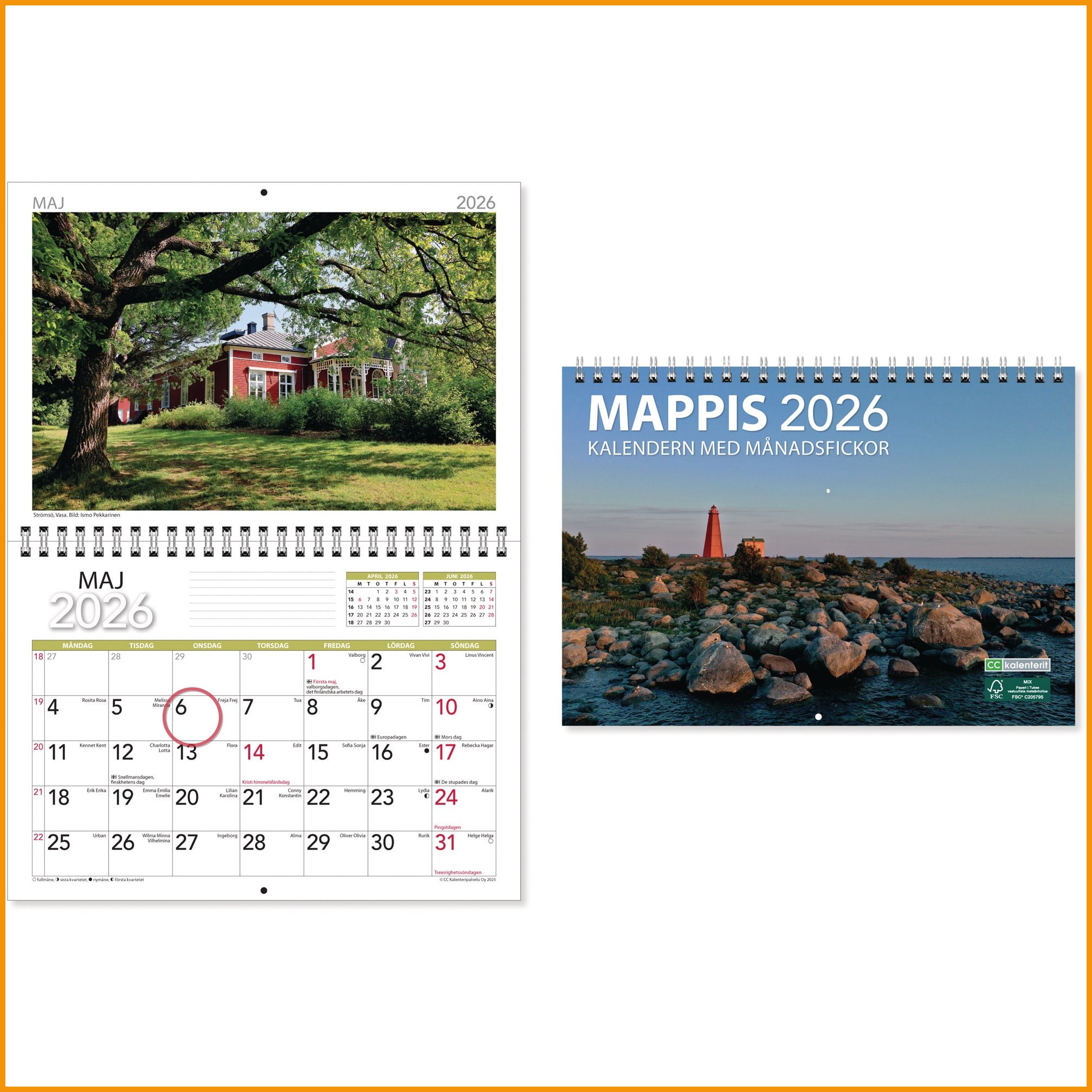 CC 5516 Mappis seinäkalenteri 2026 (ruotsinkielinen) CC 5516 Mappis seinäkalenteri 2026 ruotsinkielisenä on käytännöllinen ja suosittu valinta toimistoihin, kouluihin ja työympäristöihin, joissa tarvitaan selkeä ja monipuolinen ajanhallintatyökalu. Avattuna kalenterin koko on 250 x 350 mm, ja se sisältää 12 kuukausiaukeamaa, joista jokaisessa näkyvät nimi- ja juhlapäivät sekä kuun vaiheet. Tämä tekee kalenterista erinomaisen apuvälineen arjen ja työelämän suunnitteluun. Kalenterin jokaisessa kuukaudessa on käytännöllinen säilytystasku, johon voi tallettaa laskut, kuitit, muistiinpanot tai muut tärkeät asiakirjat. Lisäksi kalenteri tarjoaa edellisen ja seuraavan kuukauden seurannan, mikä helpottaa suunnittelua pidemmälle ajalle. Ruotsinkielinen seinäkalenteri 2026 on wiresidottu ja siinä on ripustusreikä, joten sen voi kiinnittää helposti ja siististi seinälle. Staattinen päiväjuoksija helpottaa kuluvan päivän seuraamista, ja mukana oleva vuoden 2027 vuosikalenteri tukee pitkän aikavälin aikataulutusta. Tämä kalenteri on erityisen hyödyllinen ruotsinkielisissä työympäristöissä tai kaksikielisissä toimistoissa, joissa arvostetaan visuaalisesti selkeää ja toiminnallisesti monipuolista ratkaisua. Tilaa vuoden 2026 ruotsinkielinen seinäkalenteri verkkokaupasta ja varmista, että pysyt aikatauluissa koko vuoden ajan. Huomioithan, että kalentereilla ei ole vaihto- eikä palautusoikeutta.Seinäkalenteri Cc 5516 mappis ruotsinkielinen on erinomainen kalenteritarvike, jonka verkkokaupan tilauksen toimitus kestää 1-2 päivää. Muistathan, että hinnaltaan yli 140 € verkkokauppatilaus toimitetaan aina ilmaiseksi! Meiltä voit tilata laskulla ja ilman rekisteröitymistä.