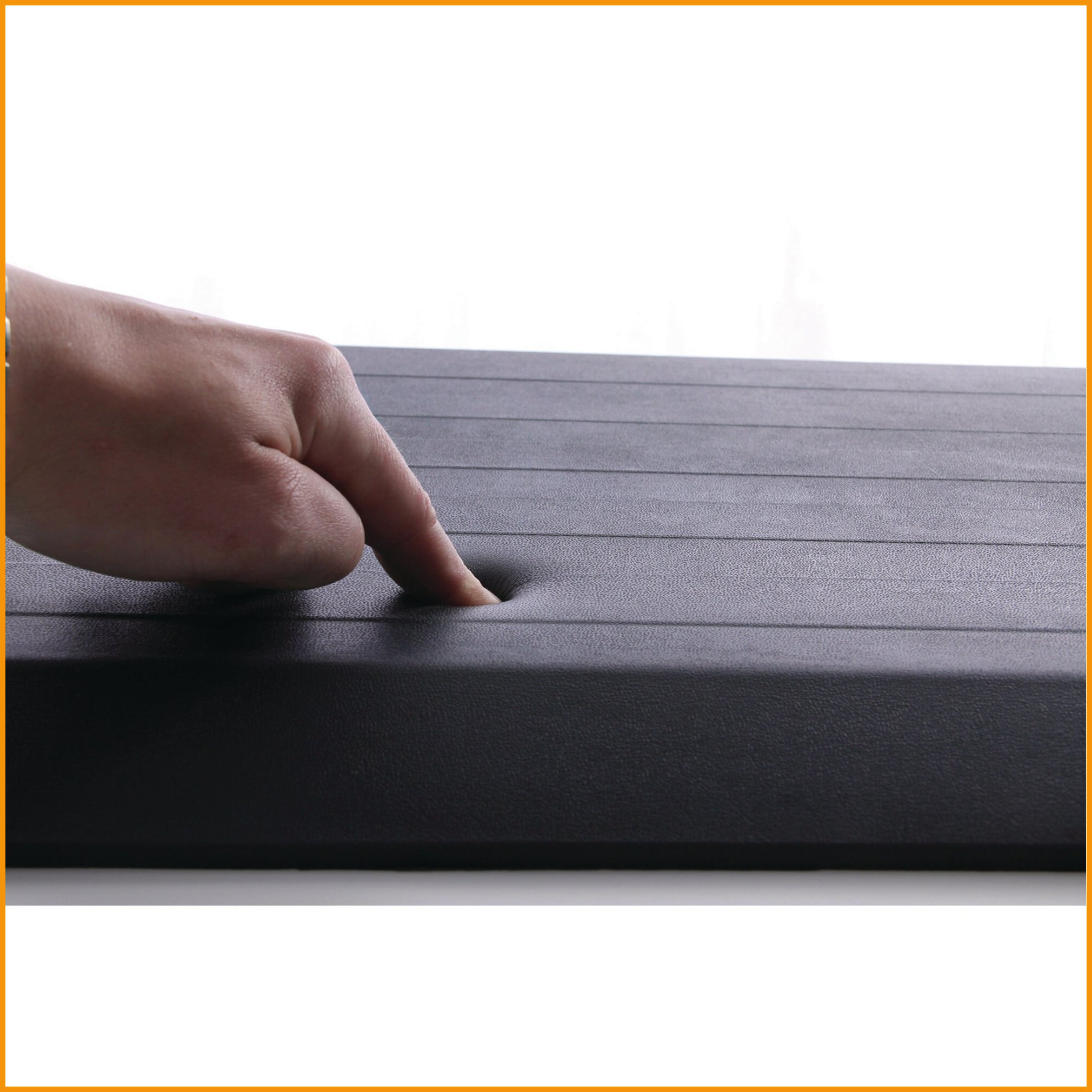 Seisontamatto Standmat tummanharmaa 710 x 530 x 24 mm on ergonominen seisomatyöskentelyyn sopiva erittäin pehmeä matto toimistoihin. Ergonominen matto parantaa ryhtiä ja vähentää jalkojen ja selän rasitusta työskentelyssä.