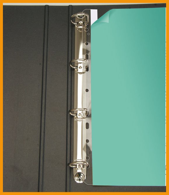 Probeco-seläke rei'ittämättömien dokumenttien mapitukseen. Kirkkaasta PET-muovista valmistetussa seläkkeessä on yleisrei'itys