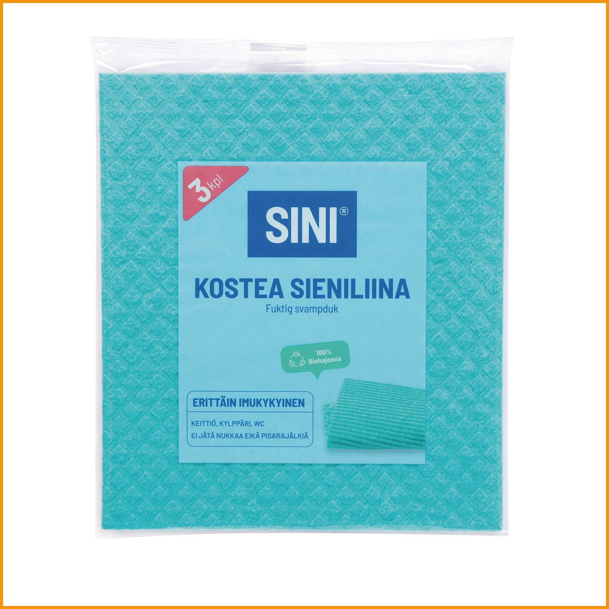 Sieniliina Sini kostea 3kpl on upea puhdistusväline, jonka toimituksen kesto on verkkokaupasta tilattuna 1-2 päivää. Huomaa, että hinnaltaan yli 140 € verkkokauppatilaus toimitetaan aina ilmaiseksi! Meiltä voit tilata laskulla ja ilman rekisteröitymistä.