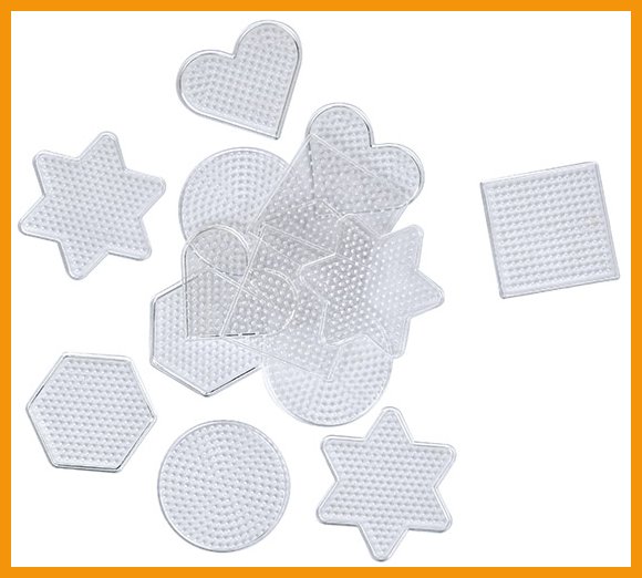 Playboxin läpinäkyvä silitysalusta silityshelmille auttaa pitämään helmet muodossa silitettäessä. Lajitelmassa on 15 alustaa seuraavissa muodoissa:3 x neliö