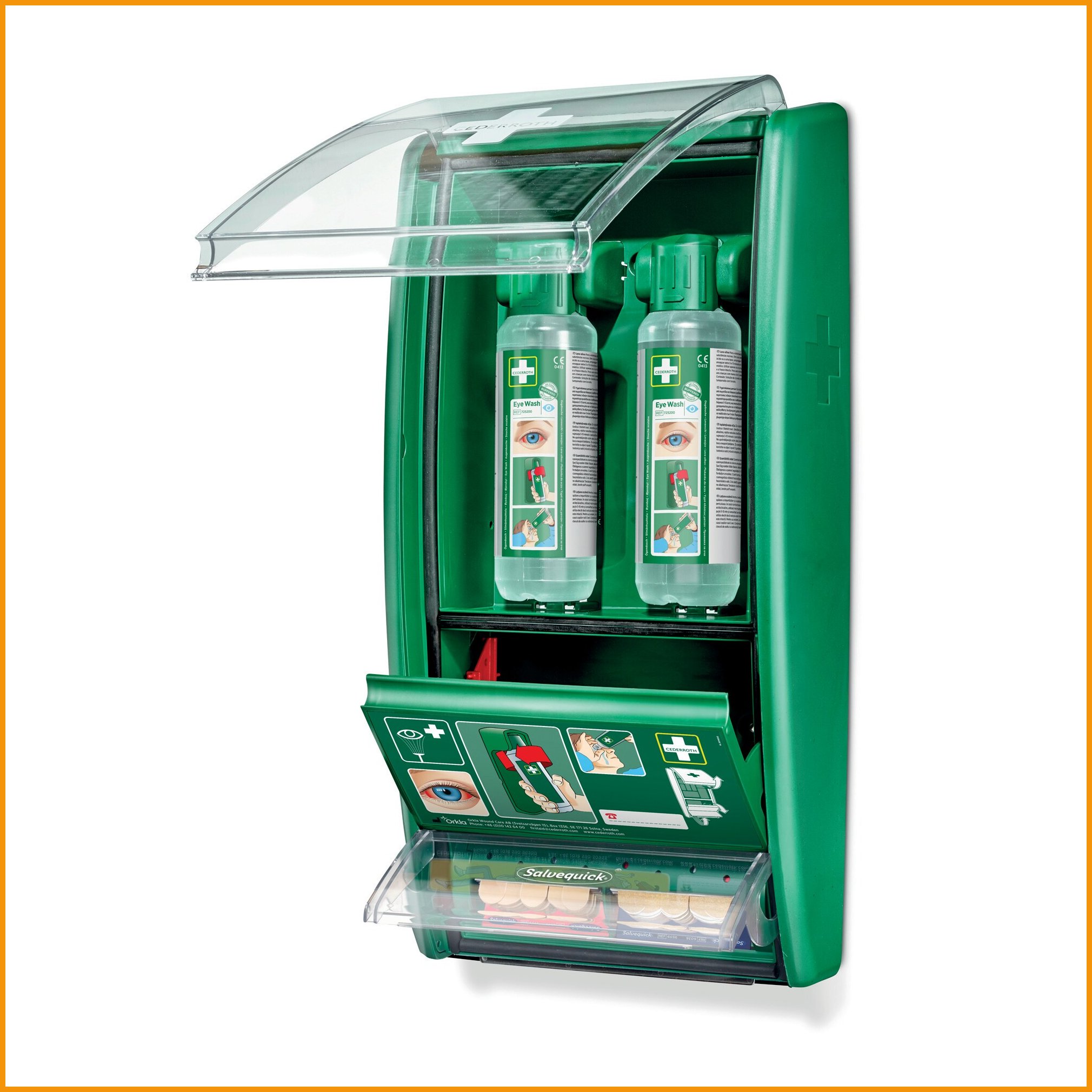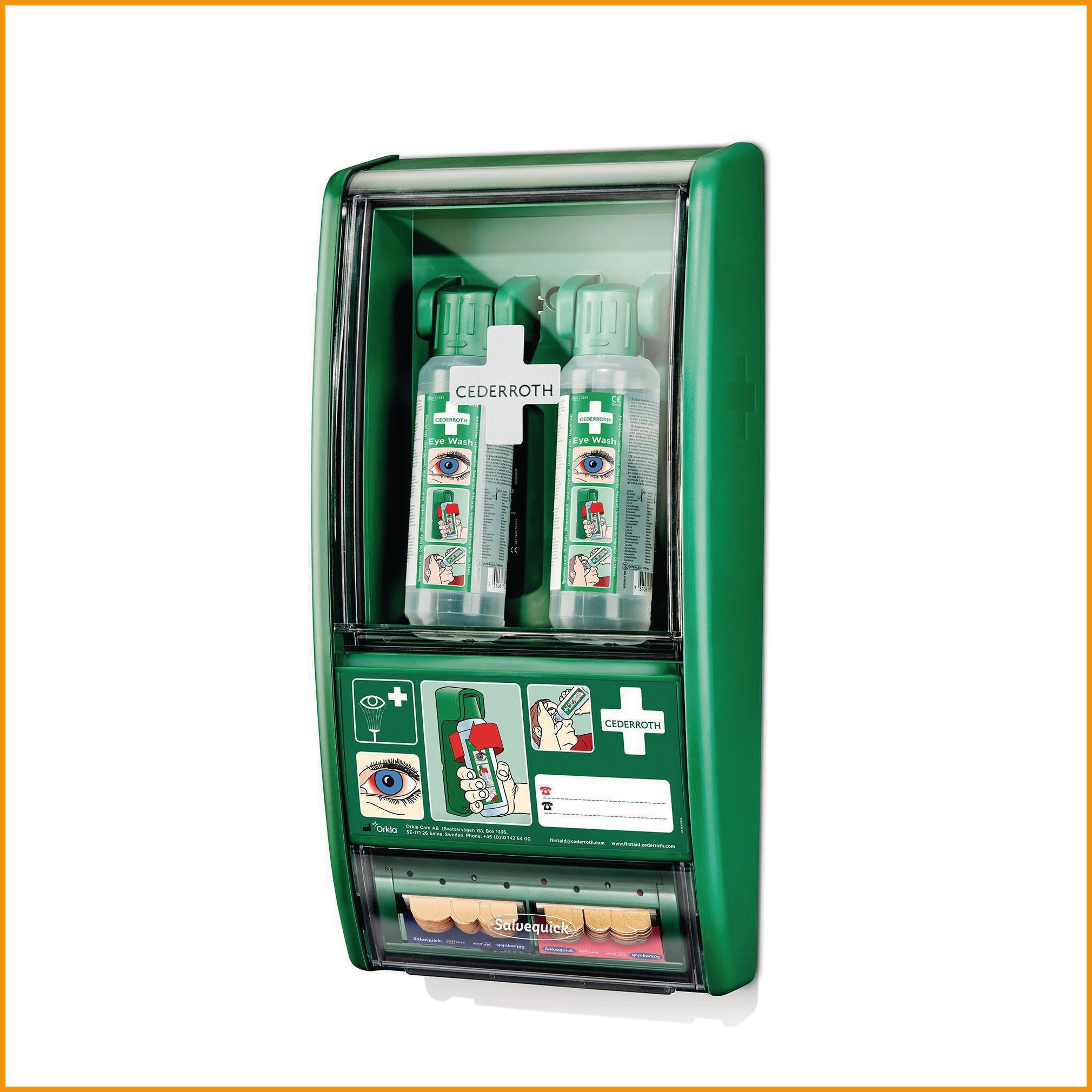 Silmänhuuhteluasema Cederroth 721500 on monipuolinen ja helppokäyttöinen ensiapuasema silmien huuhteluun. Silmänhuuhteluasemassa on kaksi huuhtelupulloa, ja laastareita aseman alaosassa. Aseman voi kiinnittää seinään.