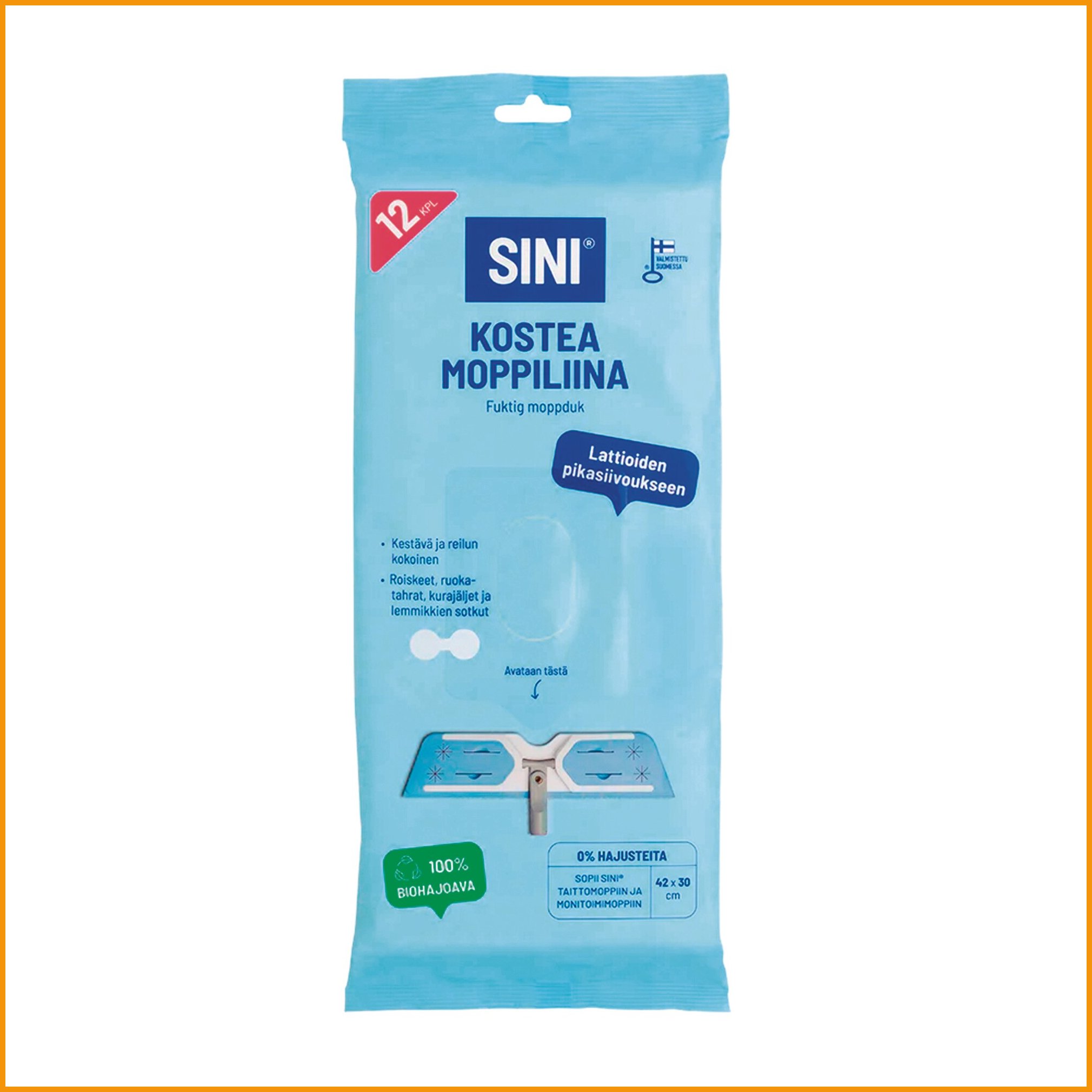 Sini kostea moppiliina 42x30 cm 12kpl on mainio siivousväline, jonka verkkokauppatilauksen toimitus perille kestää 1-2 päivää.