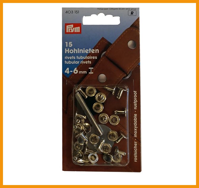 Prymin kaksiosaisella sisarniitillä kiinnität mm. hihnat laukkuihin ja vyönsoljet remmeihin. Niitit sopivat erinomaisesti myös moniin muihin nahkatöihin. Mukana pakkauksessa tulee materiaalin rei'ittämiseen tarkoitettu reikäputki ja pyöreä muovilevy, jota vasten niitin voi lyödä paikalleen. Niitti kiinnitetään vasaralla.