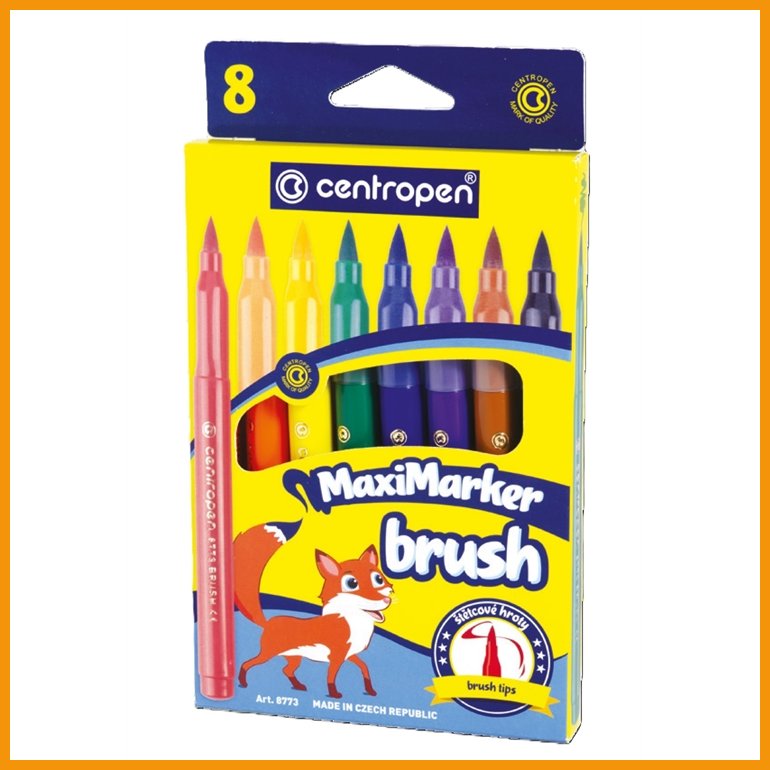 Centropen 8773 on paksu ja sivellinkärkinen huopakynä, jonka myrkytön muste peseytyy helposti käsistä ja useimmista tekstiileista. Sivellinkärjellä vaihtelet viivan leveyttä antamalla kärjelle enemmän tai vähemmän painetta paperia vasten.Viivan leveys: 1,5 - 4 mm