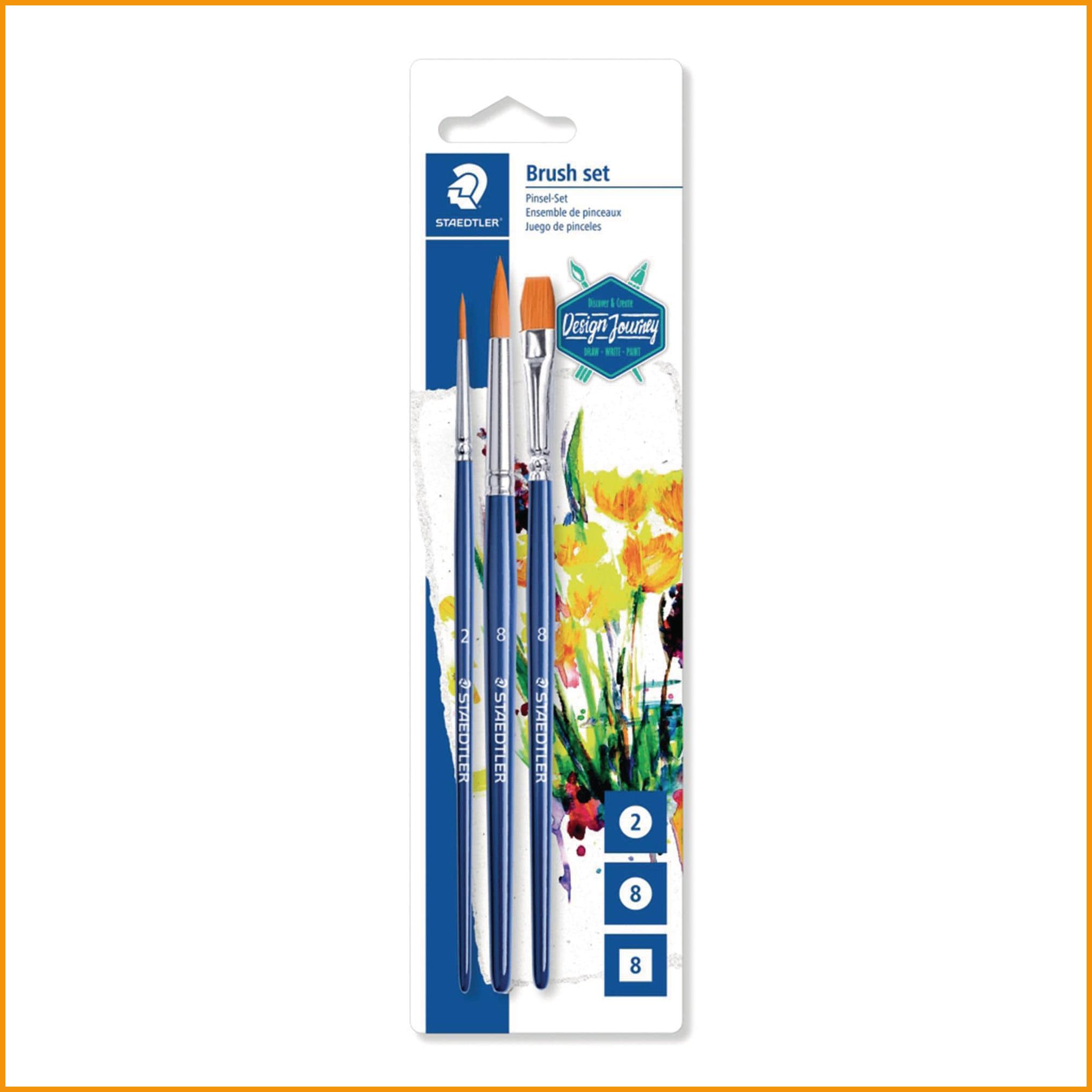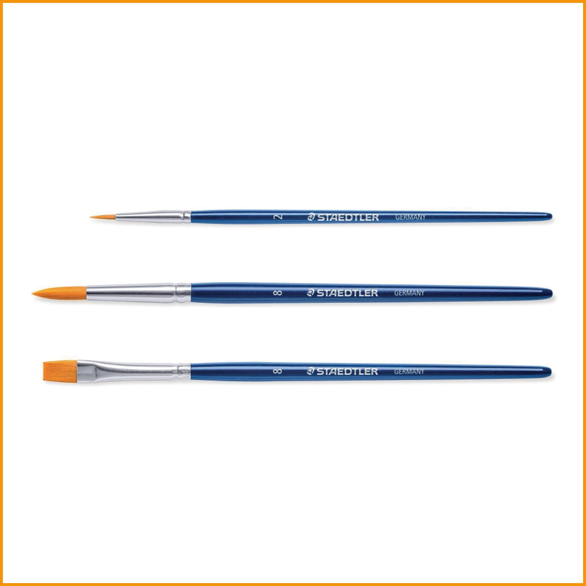3 erikokoista sivellintä samassa paketissa. 2 kpl pyöreitä nro 2 ja 8, sekä litteä nro 8. siveltimen karva on synteettinen ja siksi pitkäikäinen. sopii käytettäväksi vesi-, akryyli-, guassi- ja öljyvärien kanssa sekä kaikkien vesiliukoisten värikynien ja liitujen kanssa. myyntierä: 1 pkt ( 3 kpl)Sivellinsetit toimitetaan 3 kappaleen erissä.