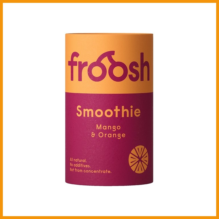 Froosh Smoothie on helppo, terveellinen ja hyvänmakuinen välipala. Mangon ja appelsiinin maut hivelevät makuhermoja ilman lisäaineita tai lisättyä sokeria.Sisältö: 150 ml.