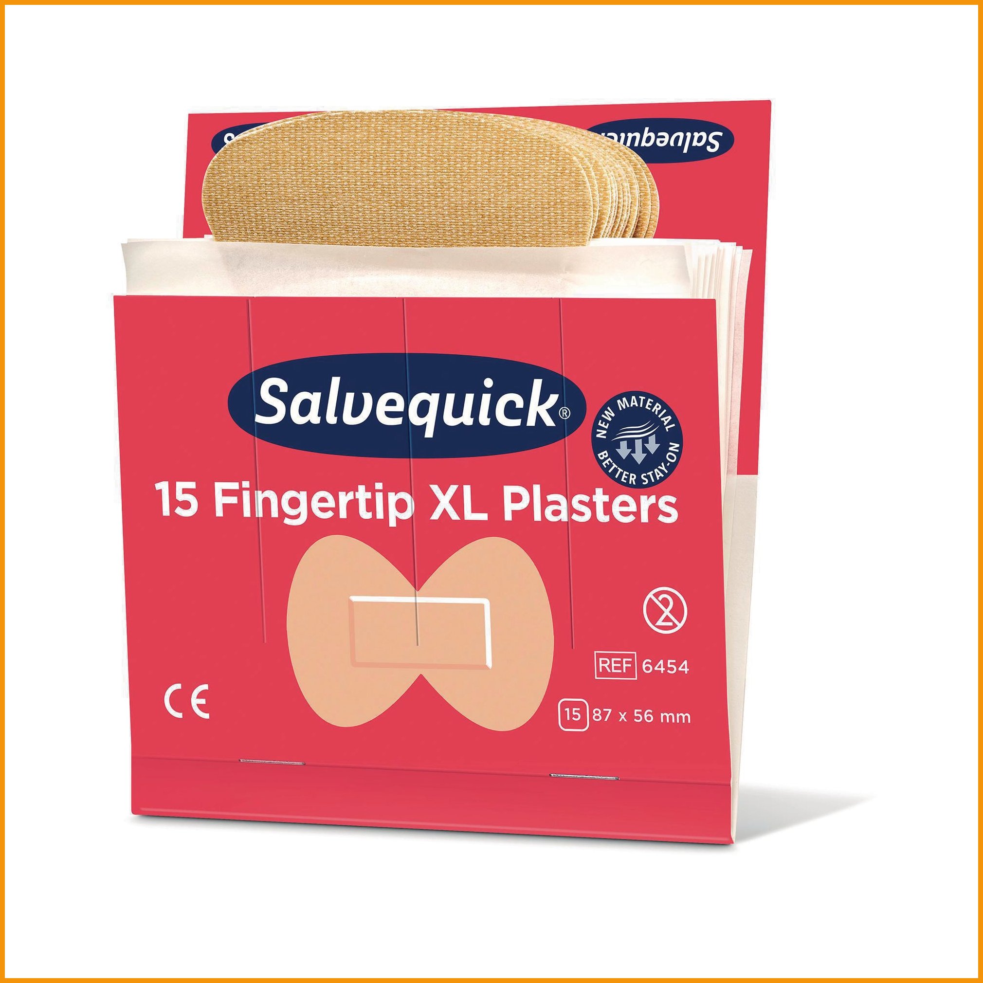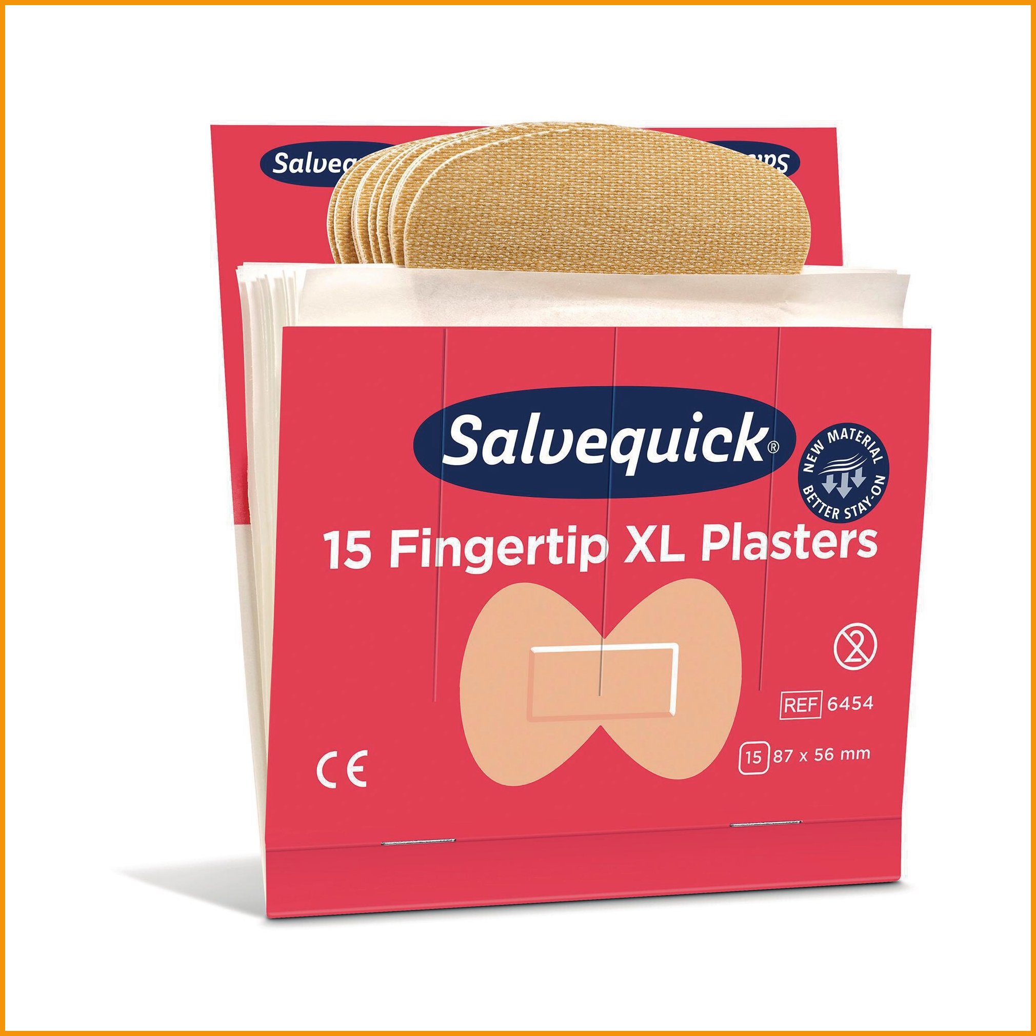 Sormenpäälaastari Salvequick 6454. Yksi rasia sisältää 6 täyttöpakkausta ja yksi täyttöpakkaus sisältää 15 laastaria (87 x 58 (23) mm). Eli yhdessä rasiassa on 90 allergiatestattua laastaria. Tämä on täyttöpakkaus Salvequick laastariautomaattiin, jota voidaan käyttää myös sellaisenaan.