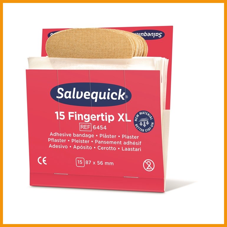 Salvequickin korkealaatuinen sormenpäälaastari on reilun kokoinen kangaslaastari sormihaavojen suojaamiseen. Allergiatestattu laastari on helppo asettaa paikalleen ja miellyttävä käytössä.Kasettimallinen täydennyspakkaus sopii mm. Salvequick Laastariautomaattiin, jonka löydät verkkokaupastamme tuotenumerolla 270004.