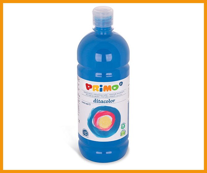 Kirkkaat ja vesipohjaiset Primo Ditacolor -sormivärit soveltuvat sormilla värjäämisen lisäksi sivellintyöskentelyyn. Väreillä voi maalata esimerkiksi paperille, pahville, kankaalleja muille huokoisille materiaaleille. Värejä voidaan sekoittaa keskenään. Tuote on dermatologisesti testattu.Pakkauskoko: 1000 ml