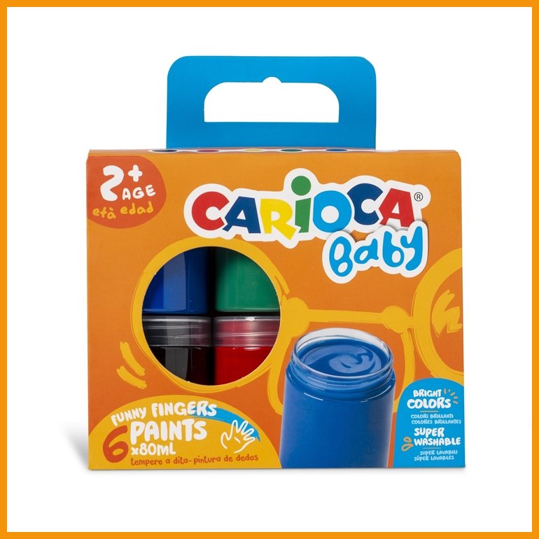 Hajuttomat ja dermatologisesti testatut CARIOCA Baby -sormivärit on helppo pestä iholta ja suurimmasta osasta tekstiilejä. Yli kaksivuotiaille soveltuvia värejä voidaan sekoittaa keskenään.Pakkauskoko: 80 ml