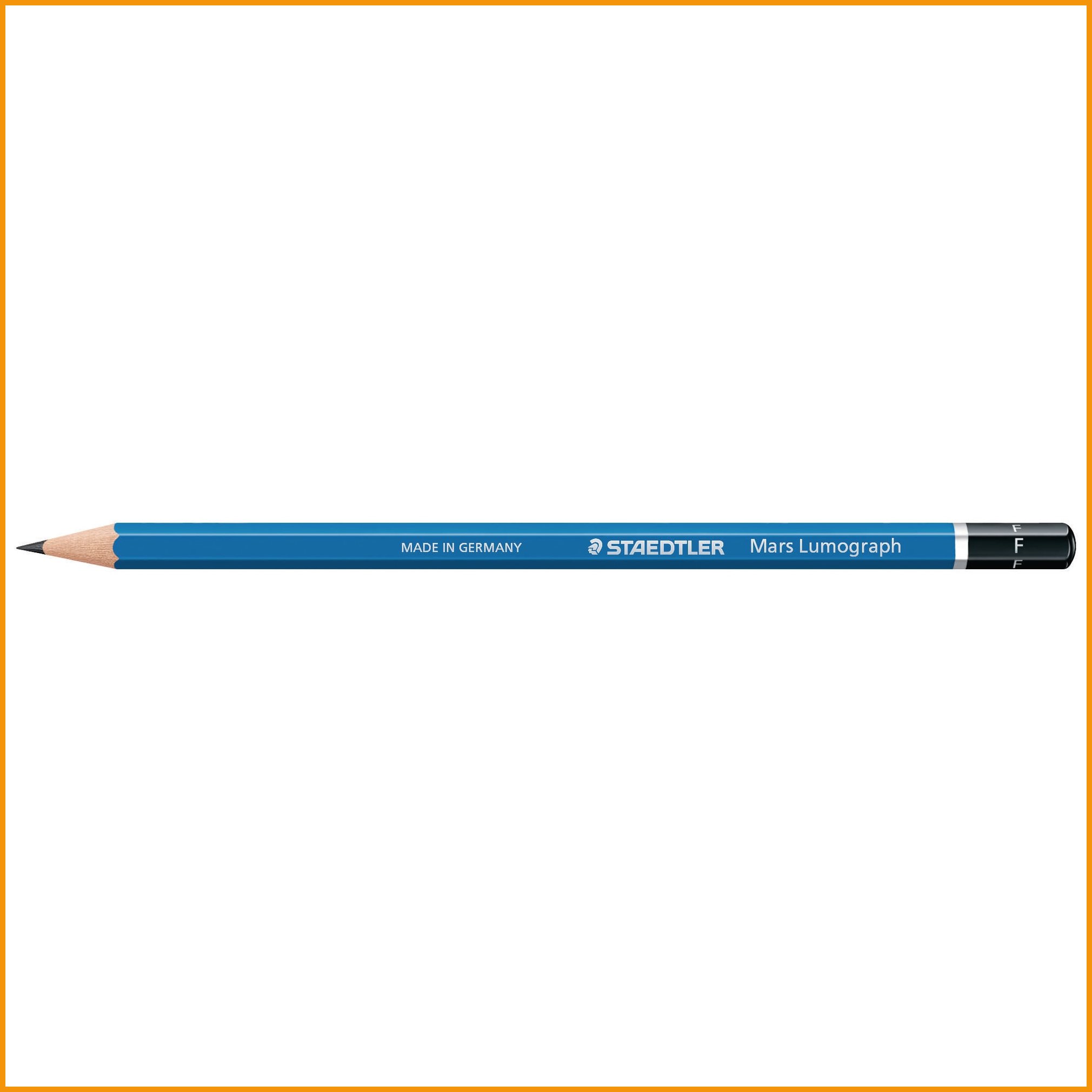 Staedtler Lyijykynä F mars lumograph 12kpl. Kuusikulmainen Staedtler Mars Lumograph lyijykynä on erinomainen valinta kirjoittamiseen, piirustukseen ja luonnosteluun paperille tai mattapintaiselle vedosfilmille, sillä kynässä käytetään erityistä lyijyseosta, joka ei katkea helposti. Lisäksi kynä on myös helppo pyyhkiä ja teroittaa teräväksi. Mars Lumograph lyijykyniä on saatavilla useilla eri lyijyn kovuuksilla. Ympäristöystävälliset Staedtler Mars Lumograph lyijykynät on valmistettu PEFC-sertifioidusta ekologisesti kestävällä tavalla hoidetun metsän puuaineksesta. Lyijykynän tilauksen toimitus kestää 1-2 päivää. Myyntierä: 1 kpl = 12 kynää.Lyijykynät toimitetaan 12 kappaleen erissä. Muistathan, että Toimitus on ilmainen kaikilla verkkokaupan ostoksilla, joiden hinta on yli 140 €.