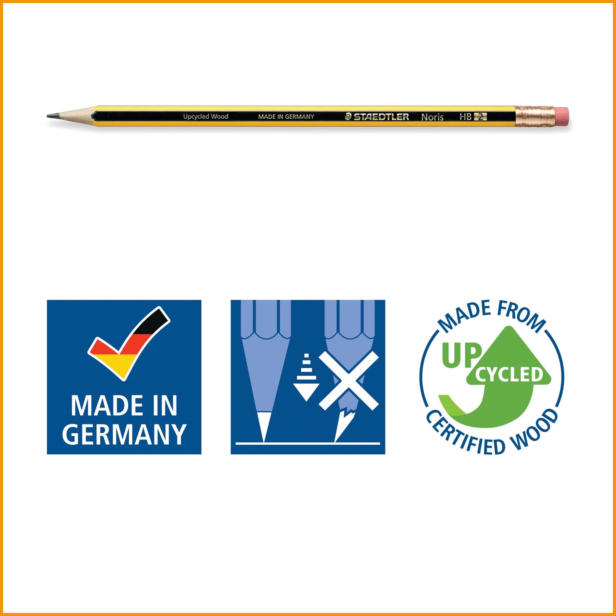 Hinta 8,33€ / 12 kplKorkealaatuinen, koulu- ja toimistokäyttöön soveltuva staedtlerin noris -lyijykynä on erinomainen valinta kirjoittamiseen, piirustukseen ja luonnosteluun. pefc-sertifioidusta puuaineksesta - upcycled wood- valmistetun kynän erityinen lyijyseos on lähes murtumaton. myyntierä: 1 kpl = 12 kynää.