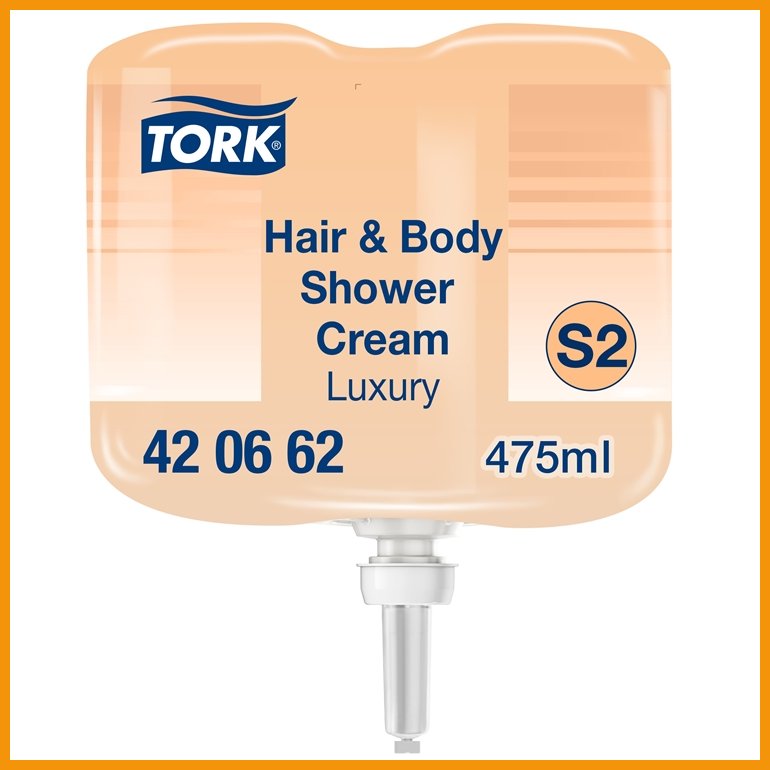 Tork Luxury Hair & Body Mini -suihkusaippua yhdistää raikastavan shampoon, hoitoaineen ja kosteuttavan suihkuvoiteen ylelliseksi 3-in-1-suihkukokemukseksi, joka sopii täydellisesti hotelleihin, kylpylöihin ja urheilutiloihin.Luonnollisen arganöljyn avulla hoitava aine pesee ihon hellävaraisesti ja hoitaa hiuksia tehden niistä pehmeät ja joustavat. Dermatologisesti testatulla tuotteella on ihoystävällinen pH.