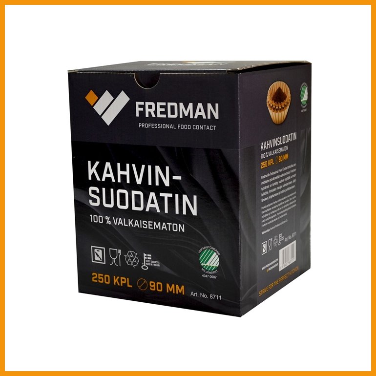 Ammattilaisten suosima valkaisematon Fredman-suodatinpaperi. Kotimaiselle tuotteelle on myönnetty Avainlippu-tunnus ja pohjoismainen Joutsenmerkki.Halkaisija: 90 mm