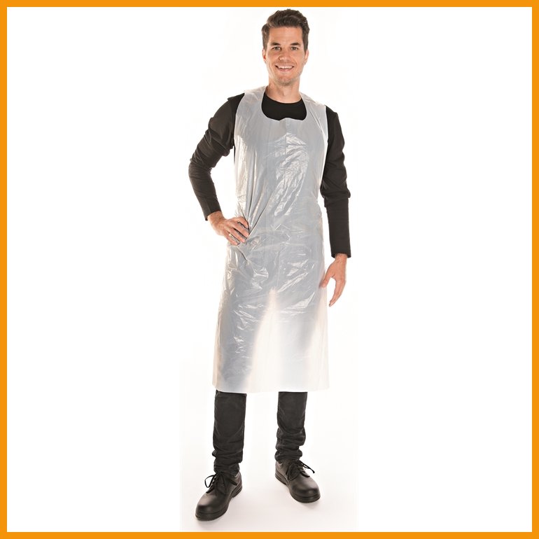 Med-Comfortin PE-muovista valmistettu esiliina suojaa vaatteita roiskeilta ja lialta. Kevyt ja ohut, mutta vahva materiaali kestää hyvin sekä hankausta että repeämistä.Mitat: 125 x 70 cm
