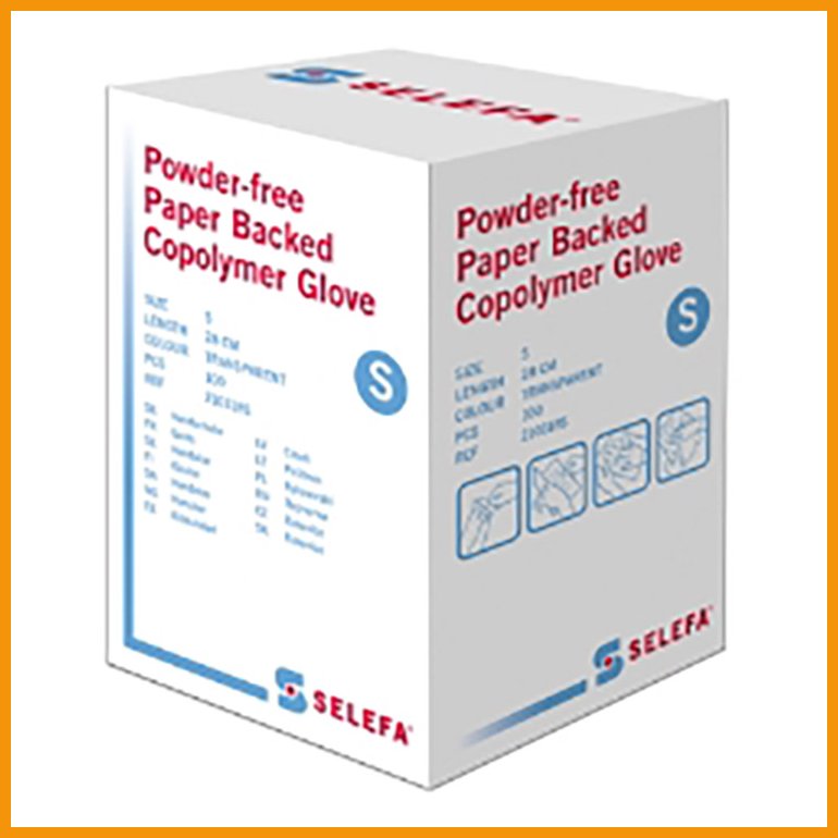 SELEFAn puuteriton EVA-kopolymeerikäsine on steriili, molempikätinen, proteiiniton ja kiinnitetty paperiin.Koko: S