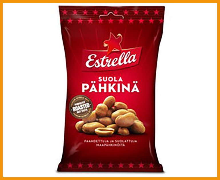 Estrellan Suolapähkinät ovat paahdettuja ja suolattuja maapähkinöitä, jotka sopivat hienosti naposteltaviksi tilaisuuteen kuin tilaisuuteen. Tuote saattaa sisältää jäämiä myös muista pähkinöistä. Soveltuu myös vegaaniseen ruokavalioon.Pussissa on 175 grammaa pähkinöitä.