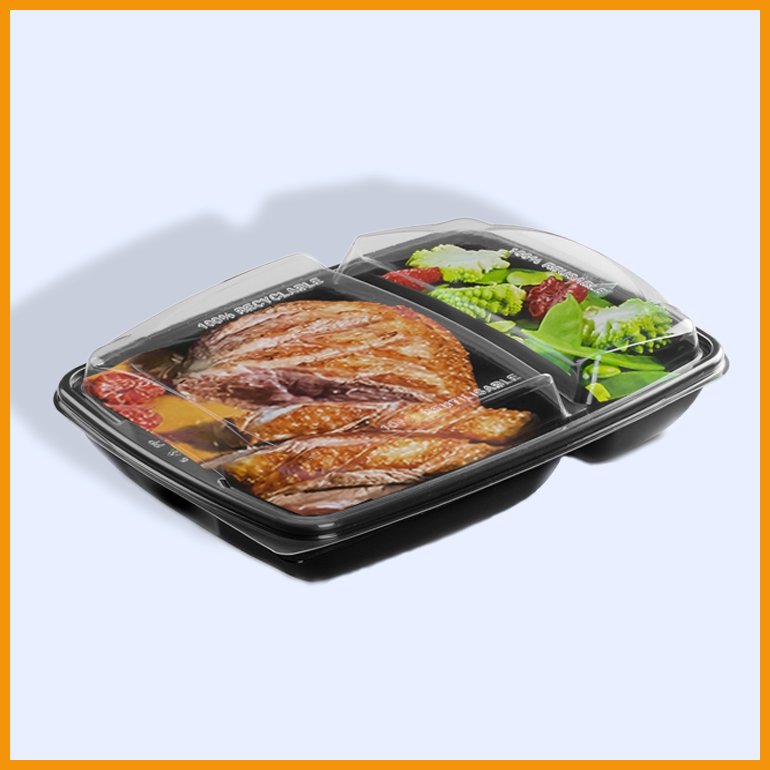 Guillinin täysin vuotamaton, pinottava ja kannellinen take away -rasia kahdella erillisellä lokerolla.