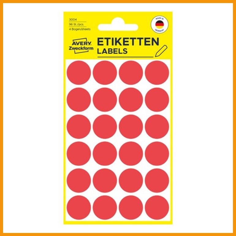 Averyn itsekiinnittyvät, pysyvällä liimalla varustetut tarrat ovat ihanteellinen tapa värikoodata kalenterit, aikataulut, hyllynreunat tai asiakirjat.Halkaisija: 18 mm