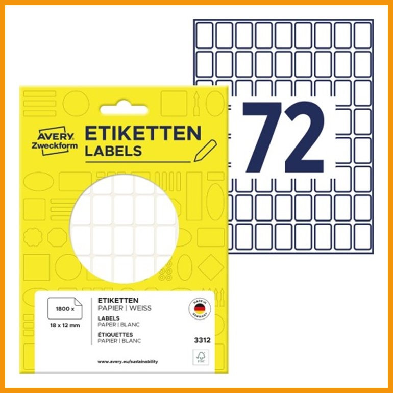 Tarra käsinkirjoitukseen Avery 3312 18 x 12 mm /1800 hinta 5,31€