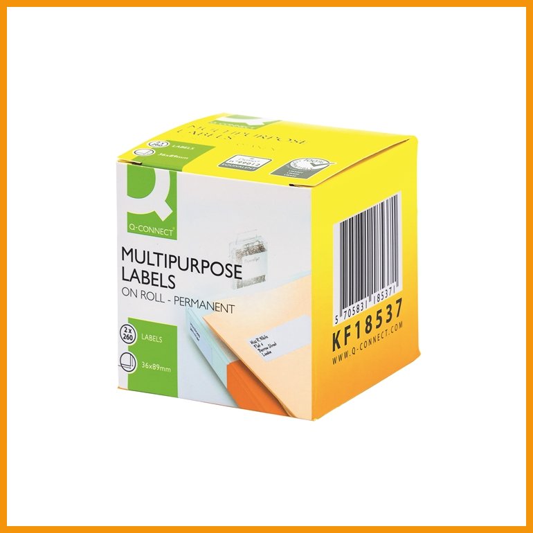 Q-CONNECTin tarrarullat ovat yhteensopivia DYMO LaberWriter 450- ja sitä vanhempien tarrakirjoittimien kanssa. Ei sovi DYMOn malleihin 550, 550turbo tai 5XLMitat: 89 x 36 mm