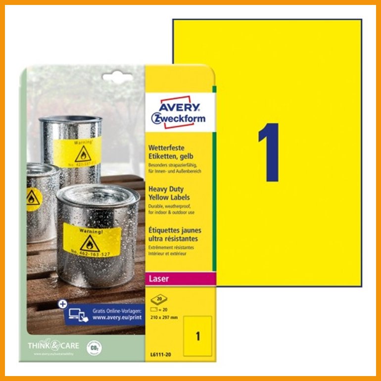 Tarra Säänkestävä Avery L6111-20 A4 keltainen /20 on loistava toimistotuote, jonka verkkokaupan tilauksen toimitus kestää 1-2 päivää. Tiedäthän, että hinnaltaan yli 140 € verkkokauppatilaus toimitetaan aina ilmaiseksi! Meiltä voit tilata laskulla ja ilman rekisteröitymistä.
